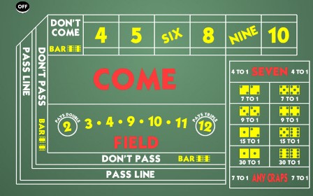 الحقل هو رهان لمرة واحدة على أن تكون النتيجة التالية ٢، ٣، ٤، ٩، ١٠، ١١، أو ١٢. جميع المكاسب تدفع ١ إلى ١، باستثناء ٢ و١٢ تدفع أكثر. في لاس فيغاس، تدفع معظم الكازينوهات ٢ إلى ١ على ٢، و٣ إلى ١ على ١٢. في رينو، يبدلون الرهان، ويدفعون ٣ إلى ١ على ٢، و٢ إلى ١ على ١٢. يوضح الجدول التالي النتائج المحتملة. تُظهر الخلية السفلية اليمنى نسبة ربح للكازينو ٢.٧٨٪.