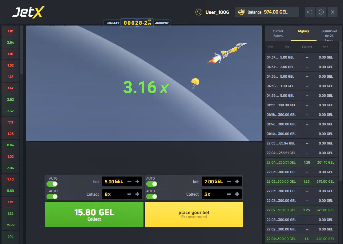 قم بلعب JetX من أجل المتعة على موقع SmartSoft Gaming على الويب.
