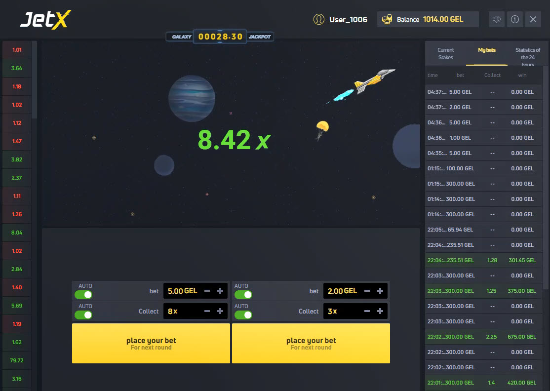 تعتمد القواعد التالية على لعبة JetX من SoftSwiss Gaming.