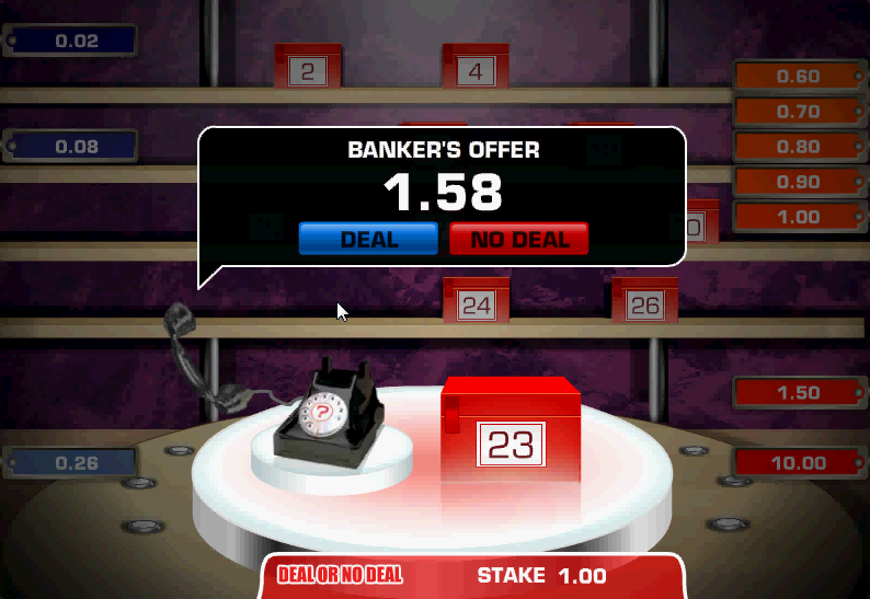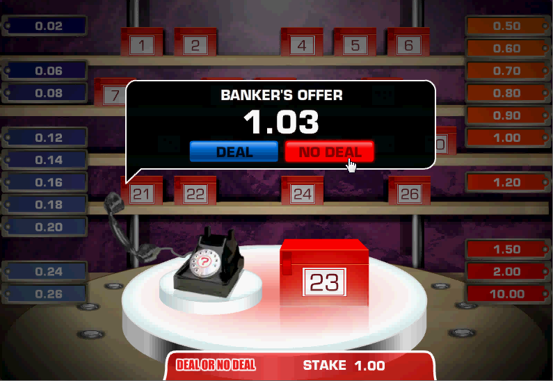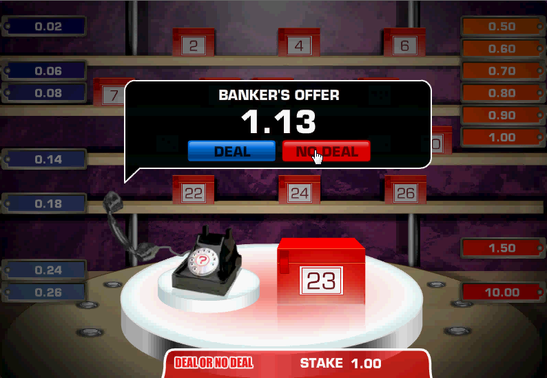 - سيعرض المصرفي على اللاعب قيمة استسلام أخرى. يمكن للاعب قبولها والانسحاب، أو فتح صندوقه والفوز بما بداخله.