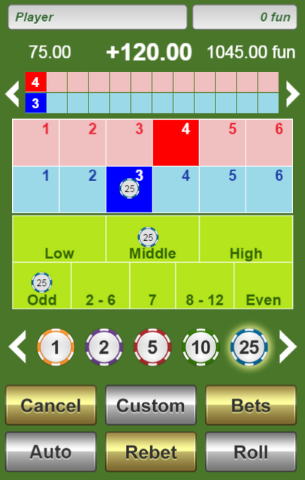 - متوسط - على الأقل نرد واحد يحمل الرقم ثلاثة أو أربعة. يدفع من ٤ إلى ٥.