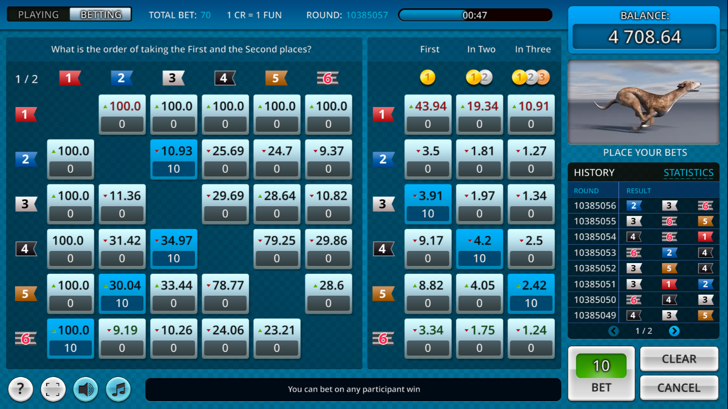 - تتم تسوية الرهانات وفقًا لنتيجة السباق.