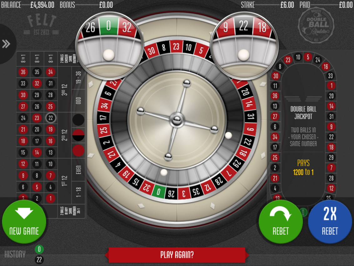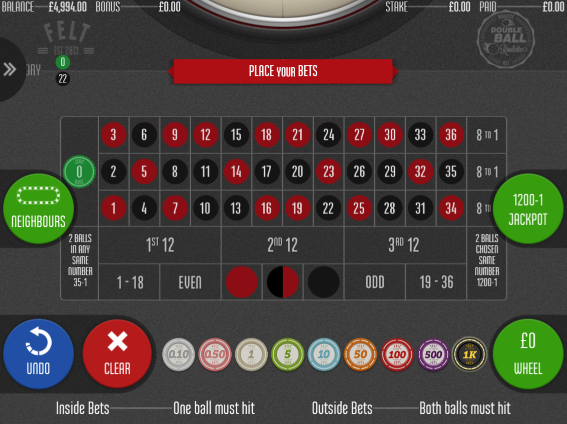 إليكم بعض لقطات الشاشة للعبة روليت الكرة المزدوجة ذات الصفر الواحد من Felt Gaming. انقر على أي من الصورتين لعرض أكبر.