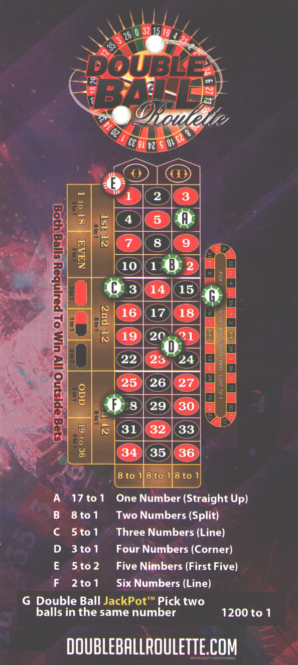 - الجائزة الكبرى للكرة المزدوجة — تدفع 1200 إلى 1 إذا سقطت كلتا الكرتين في الرقم المحدد.