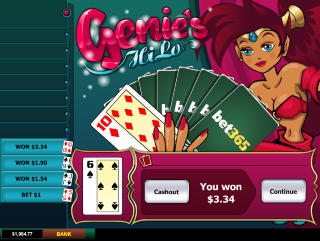 - ثم يقوم اللاعب بالمراهنة على ما إذا كانت البطاقة التالية ستكون أعلى/أقل من البطاقة الأصلية و/أو على لون البطاقة التالية.