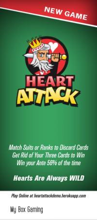 هارت أتاك لعبة طاولة ظهرت لأول مرة، على حد علمي، في كازينو فوكسوودز بولاية كونيتيكت أوائل عام ٢٠١٩. قواعدها صعبة المقارنة مع أي ألعاب أخرى معروفة. إذا فرضت نفسها، فهي تشبه إلى حد ما لعبة أونو، حيث يحاول اللاعب التخلص من أوراقه بمطابقة أوراق الموزع من نفس الرتبة أو النوع. ولإضافة لمسة مميزة، القلوب هي أوراق برية.
