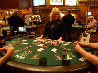 - بمجرد أن يتخذ جميع اللاعبين قرارهم، يقوم الموزع بقلب أوراقه السبعة وتقييم يده بنفس الطريقة الموضحة أعلاه.