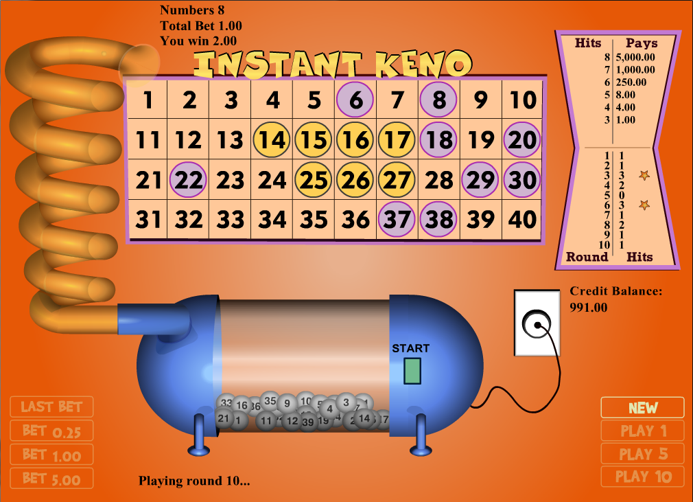 يختار اللاعب من 3 إلى 10 أرقام من 1 إلى 40 ثم تقوم اللعبة باختيار 10. كلما زاد عدد الأرقام التي يسحبها الكازينو والتي تتطابق مع اختيارات اللاعب، كلما فاز أكثر.