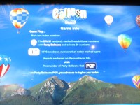 - ستختار اللعبة ٢٠ رقمًا من ١ إلى ٨٠. أثناء اختيار الأرقام، ستحسب اللعبة الرقم الذي يطابق اختيارات اللاعب، بالإضافة إلى البالونات. عندما تختار اللعبة رقمًا مُعلّمًا ببالون، سينفجر هذا البالون.