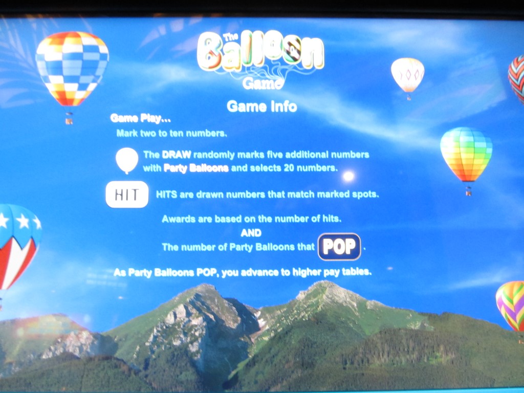 لعبة البالون هي لعبة تعتمد على الكينو، وتُستخدم على أجهزة متعددة الألعاب من إنتاج شركة U1 Gaming. رأيتُ مثل هذه الأجهزة في كازينوهات لاس فيغاس كلوب، ورامبارت، ودوتي في لاس فيغاس. تشبه لعبة البالون لعبة كينو الكهف ، إلا أنها تستخدم خمسة بالونات بدلاً من ثلاث بيضات.