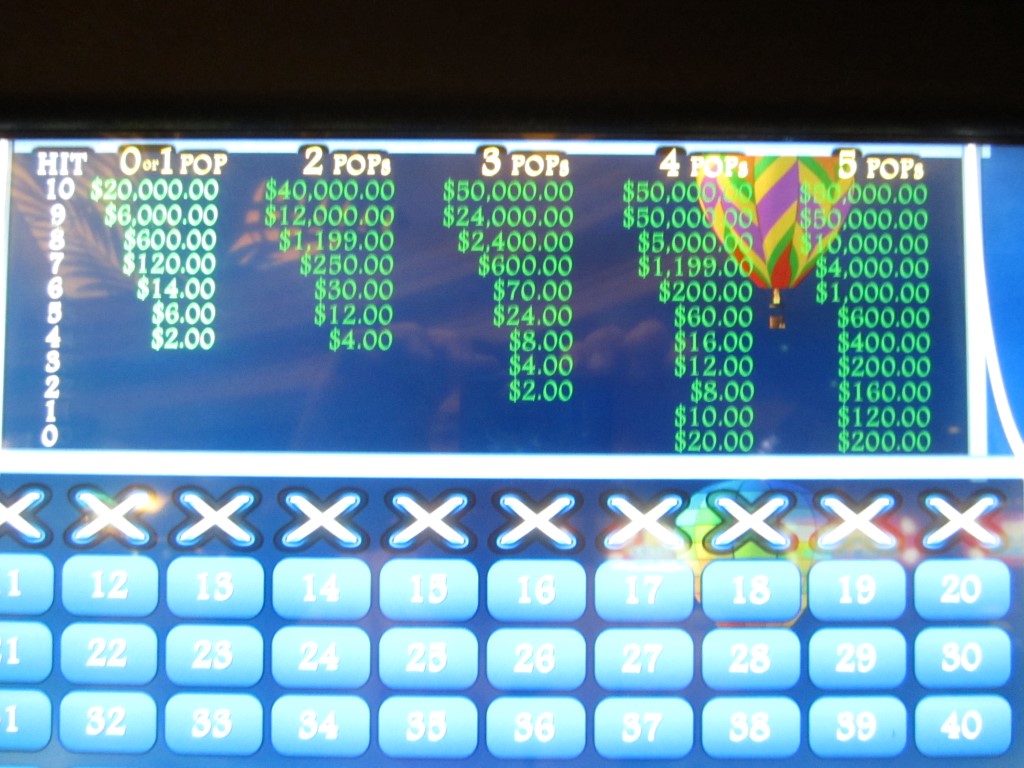 وهذا هو العائد لاختيار 2 إلى 10 أرقام، مرة أخرى وفقًا لرهان بقيمة 2 دولار تم إجراؤه في كازينو Rampart.