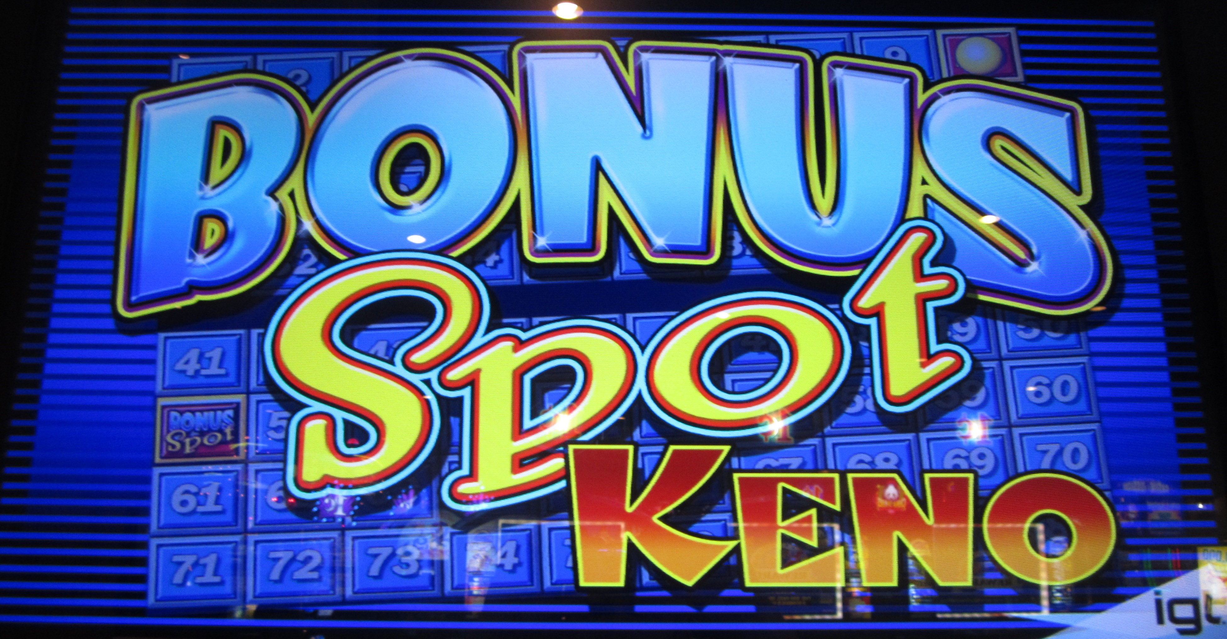 Bonus Spot Keno هو أحد أشكال الكينو التي لاحظتها في كازينو Rampart في لاس فيغاس في 15 يناير 2016. يتم لعبها بنفس طريقة الكينو التقليدية ، باستثناء أن اللاعب يحصل على المزيد من المال إذا كان الرقم الأول الذي يختاره يطابق سحب الكرة.