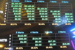 - إذا تطابق الرقم الذي اختاره اللاعب مع الرقم الذي اختارته اللعبة، يُسمى ذلك صيدًا. يُدفع للاعب، جزئيًا، وفقًا لعدد الصيد.