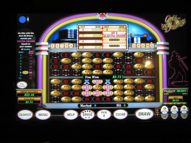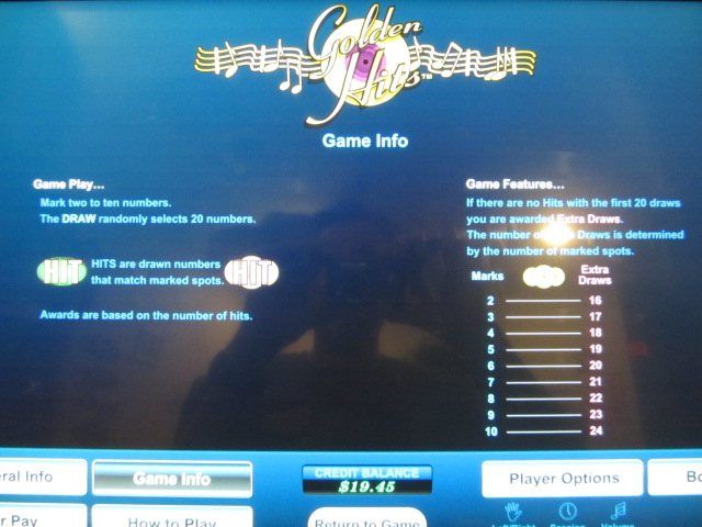 جولدن هيتس لعبة تعتمد على الكينو، متوفرة على ماكينات متعددة الألعاب من إنتاج شركة يو ون جيمينج . رأيتُ مثل هذه الماكينات في كازينوهات لاس فيغاس كلوب، ورامبارت، وإل كورتيز، ودوتي في لاس فيغاس. تعتمد لعبة جولدن هيتس على اختيار 16-24 كرة إضافية، إذا لم يحصل اللاعب على أي نتيجة، وذلك حسب عدد اختيارات اللاعب.