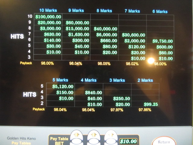 - يُدفع للاعب بناءً على عدد اختياراته التي تُطابق نتائج سحب الكرة العشوائية وجدول الدفع. يُعرف هذا بعدد "الضربات".