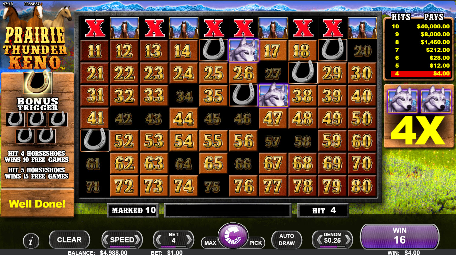 - مناقشة حول لعبة Prairie Thunder Keno في منتديات Wizard of Vegas.