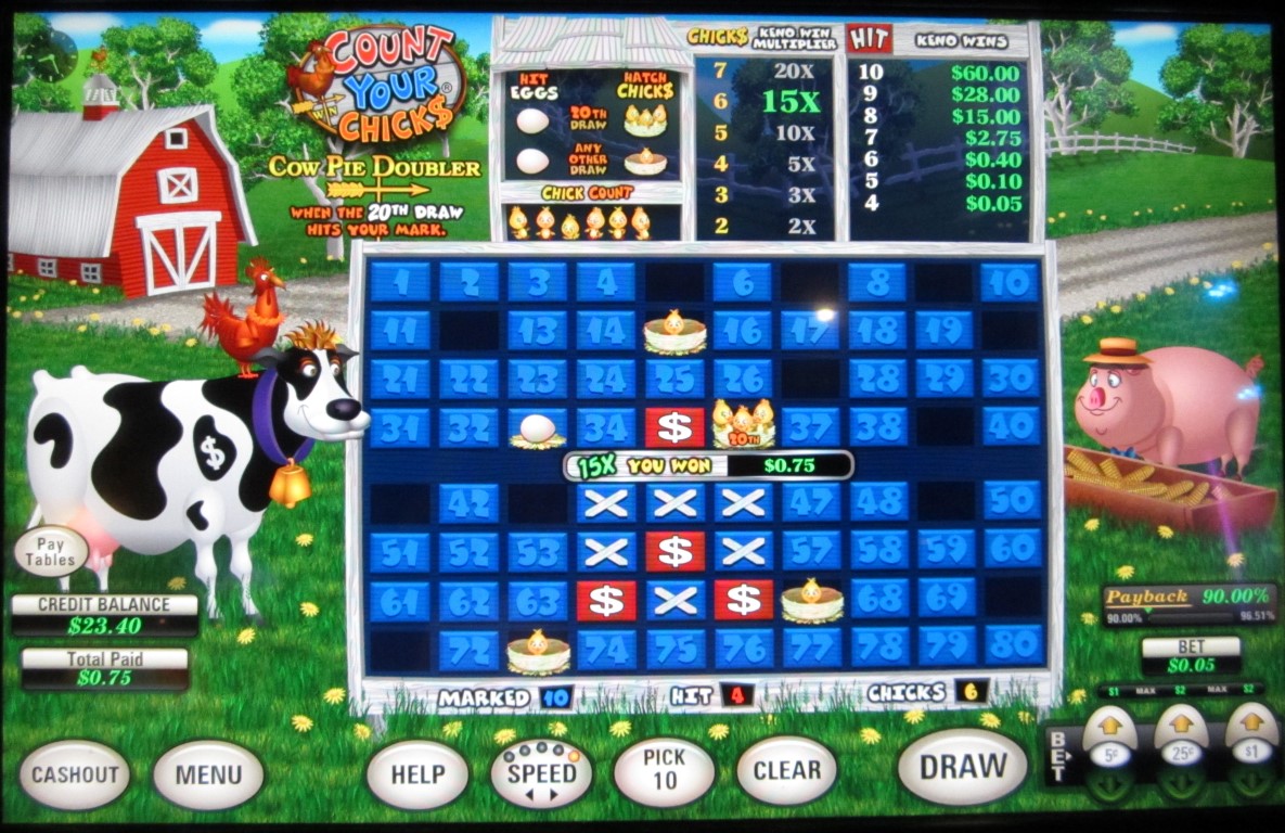 يوضح الجدول التالي العائد المستهدف حسب فئة اللعبة ومبلغ الرهان. في معظم الحالات، قد تختلف العائدات الفعلية بنسبة 0.03% تقريبًا. أما في لعبة كينو "اختر رقم 2"، فتختلف النسبة أكثر نظرًا لقلة المدفوعات اللازمة لضبط العائد. تشمل العائدات لعبة مكافأة عشوائية، تُساهم بنسبة 0.5025% من إجمالي العائد.