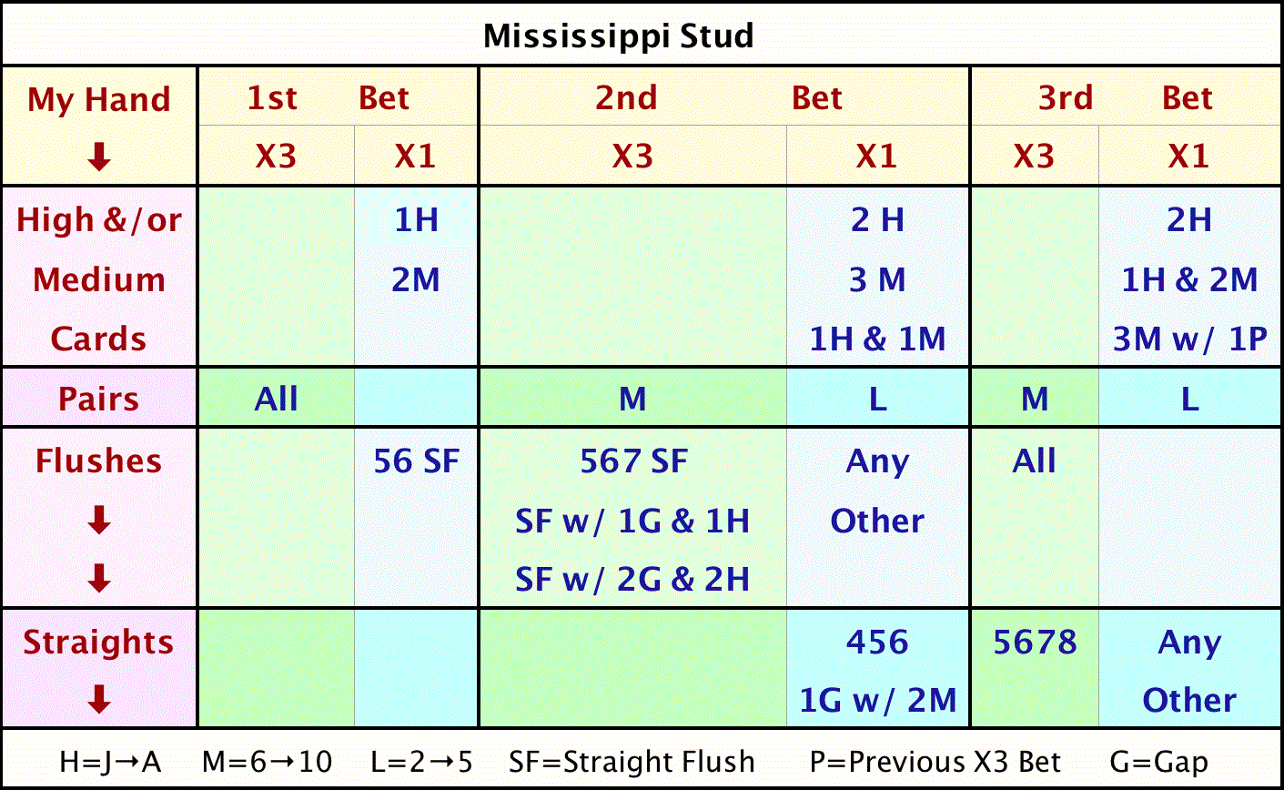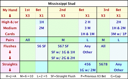 - يمكن للاعب أن يطوي أوراقه أو يراهن على "الشارع الثالث"، بما يعادل من واحد إلى ثلاثة أضعاف المبلغ الأولي.
