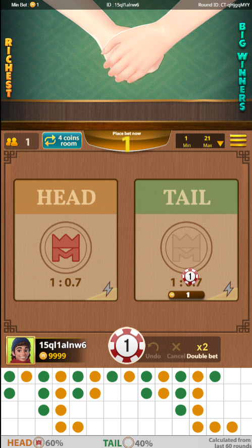 - يمكن للاعب المراهنة على الوجه أو الكتابة.