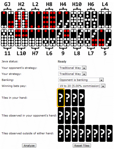 ستخبرك حاسبة باي غاو الخاصة بي بالقيمة المتوقعة و/أو الاستراتيجية لأي يد، مع الكثير من الميزات الأخرى بما في ذلك تأثير البلاط المعروف أن اللاعبين الآخرين أو خصمك يحملونه.