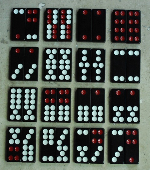 - يتم لعب لعبة باي غاو باستخدام مجموعة من 32 قطعة دومينو معروضة أدناه.