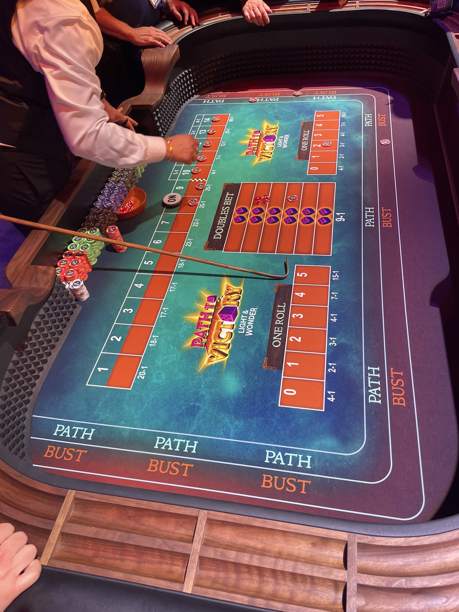- المسار — يفوز إذا وصل القرص إلى الموضع 10 إلى 14 — يدفع 4 إلى 1 للوصول إلى الموضع 14، و3 إلى 1 للوصول إلى الموضع 13، و1 إلى 1 للوصول إلى الموضع 10-12.