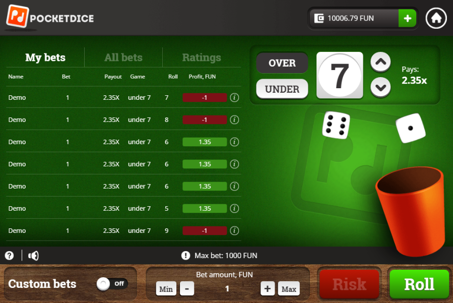 يمكنك لعب Pocket Dice في كازينو LimoPlay على الإنترنت.