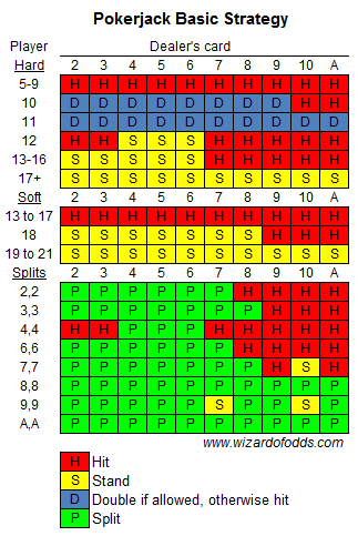 فيما يلي الاستراتيجية الأساسية لقواعد لعبة البلاك جاك مع افتراض عدم وجود رهانات جانبية.