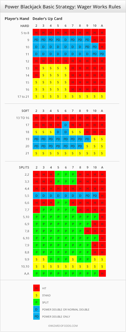 يوضح الجدول التالي الاستراتيجية الأساسية لقواعد Wager Works.