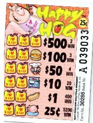 سعر تذكرة "هابي هوغ" هو ٢٥ سنتًا للتذكرة. يُحسب العائد بضرب قيمة الفوز في الاحتمالية في ٤، مما يُظهر أن العائد المتوقع هو ٧١٫٤٣٪ من قيمة الرهان.