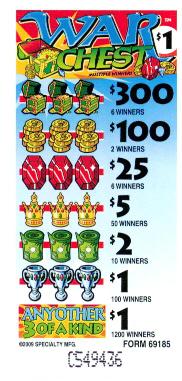 تُظهر معظم علامات التبويب القابلة للسحب الجوائز المحتملة، وعدد الجوائز في كل دفعة. باستخدام هذه المعلومات، وعدد الجوائز في كل دفعة من الملصقات، كان من السهل جدًا حساب عوائد كل نوع من الألعاب. يُظهر باقي هذه الصفحة عوائد عشر ألعاب مختلفة. جربتُ بعض علامات التبويب القابلة للسحب (خاصةً اختيار اللاعبين وولاية ألاسكا الواسعة) ولم تُشر إلى الجوائز المحتملة، ولا إلى العدد المطبوع لكل دفعة، وهي محذوفة من هذه الصفحة.