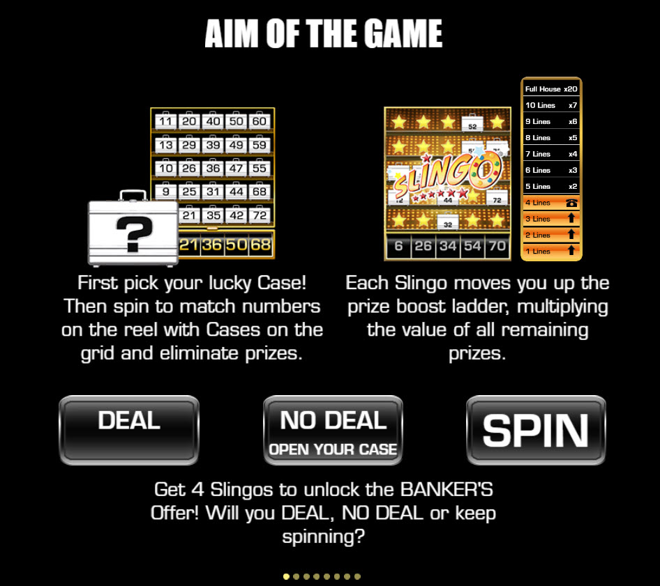 لعبة Slingo Reveal مشابهة للعبتي Slingo Deal or No Deal وSlingo Fortunes. إليك أهم الفروقات: