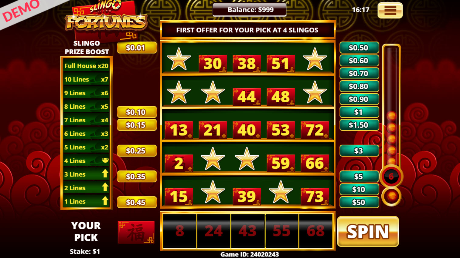 يبدو أن لعبة Slingo Fortunes هي نفس اللعبة تمامًا، ولكن بطابع آسيوي.