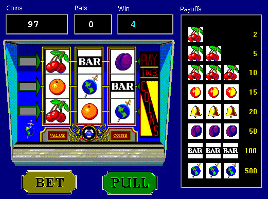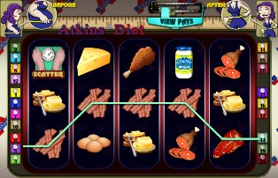 ماكينات القمار هي اللعبة الوحيدة تقريبًا في الكازينو التي لا تُقاس فيها احتمالات الربح. بمعنى آخر، لا يعرف اللاعب كيفية تصميم اللعبة، لذا يصعب عليه استخدام لعبة حقيقية كمثال. لذا، لشرح آلية عملها، صممتُ ماكينة قمار "حمية أتكينز" (الرابط). إنها لعبة بسيطة بخمس بكرات مع جولة مكافأة دورات مجانية، تُشبه إلى حد كبير لعبة كليوباترا من IGT.