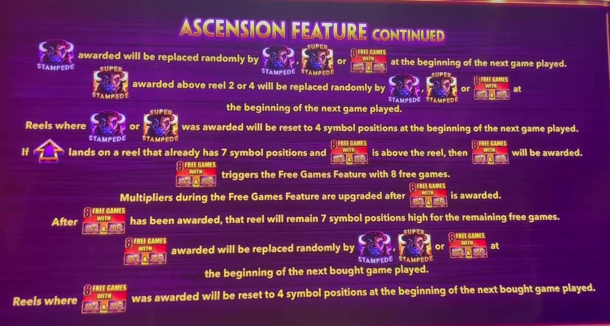 لعبة "صعود الجاموس" هي واحدة من بين العديد من الألعاب التي تستلهم طابع الجاموس. ما يميزها هو أن عدد المواقع المعروضة على البكرات من ٢ إلى ٤ يمكن أن يتراوح بين ٤ و٧. كلما زادت مجموعات الرموز، زادت فرص الفوز واقتربت من الحصول على مكافأة.