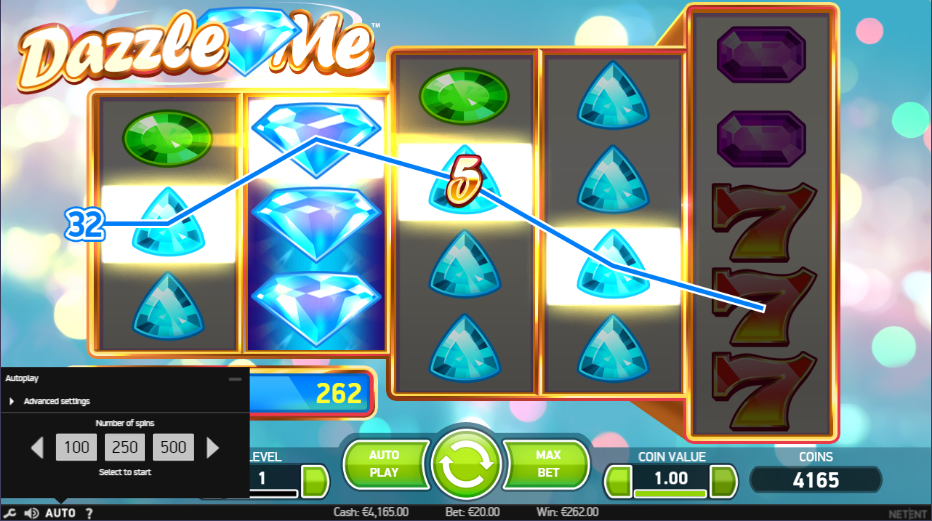 إذا كنت من محبي التألق، فلن تُخيب لعبة Dazzle Me ظنك. أحجار كريمة لامعة مُكدسة في كل مكان في هذه اللعبة من NetEnt. رهان بقيمة 20 رصيدًا يُمكّنك من شراء جميع خطوط الدفع الـ 76. مع وجود ستة رموز دفع فقط، هناك الكثير من "الفوز". مع ذلك، جدول الدفع منخفض، فلا تتحمس كثيرًا.