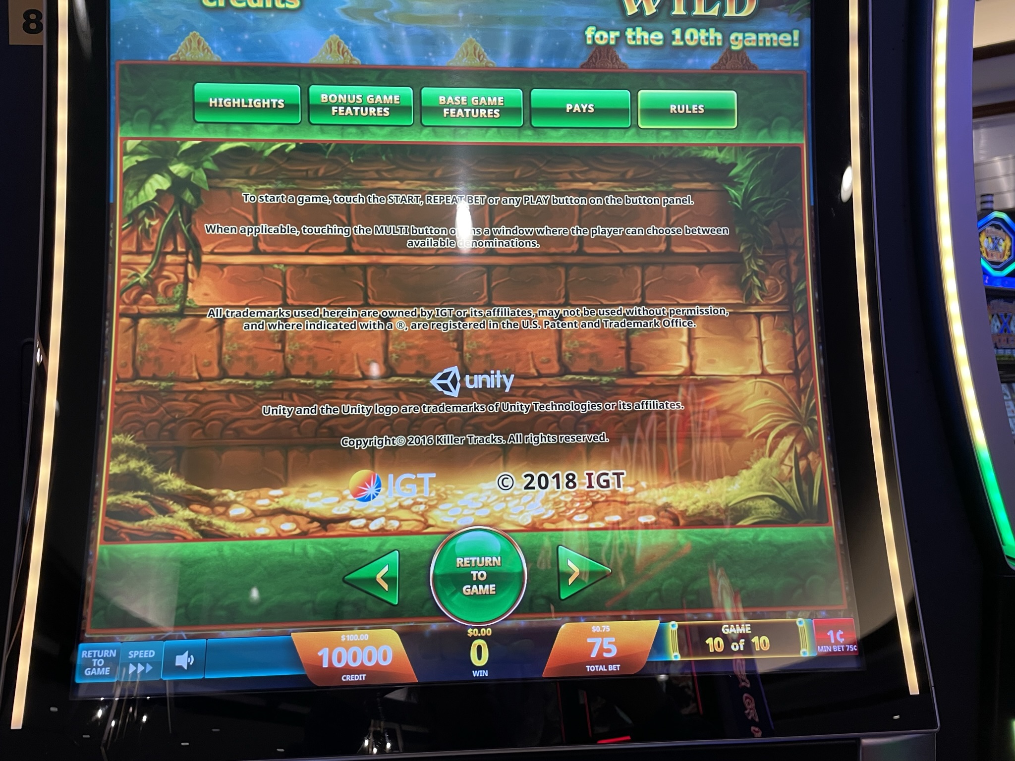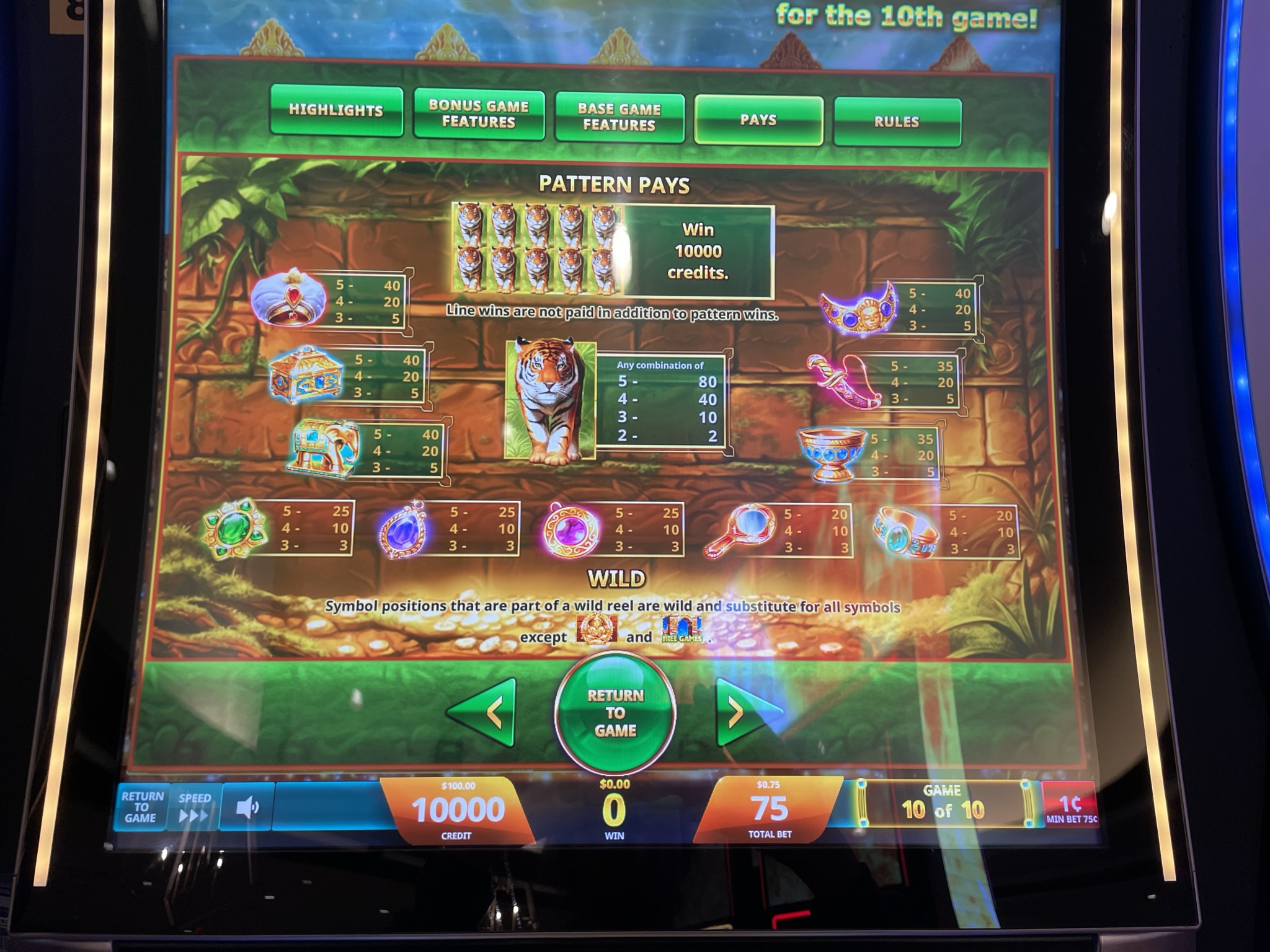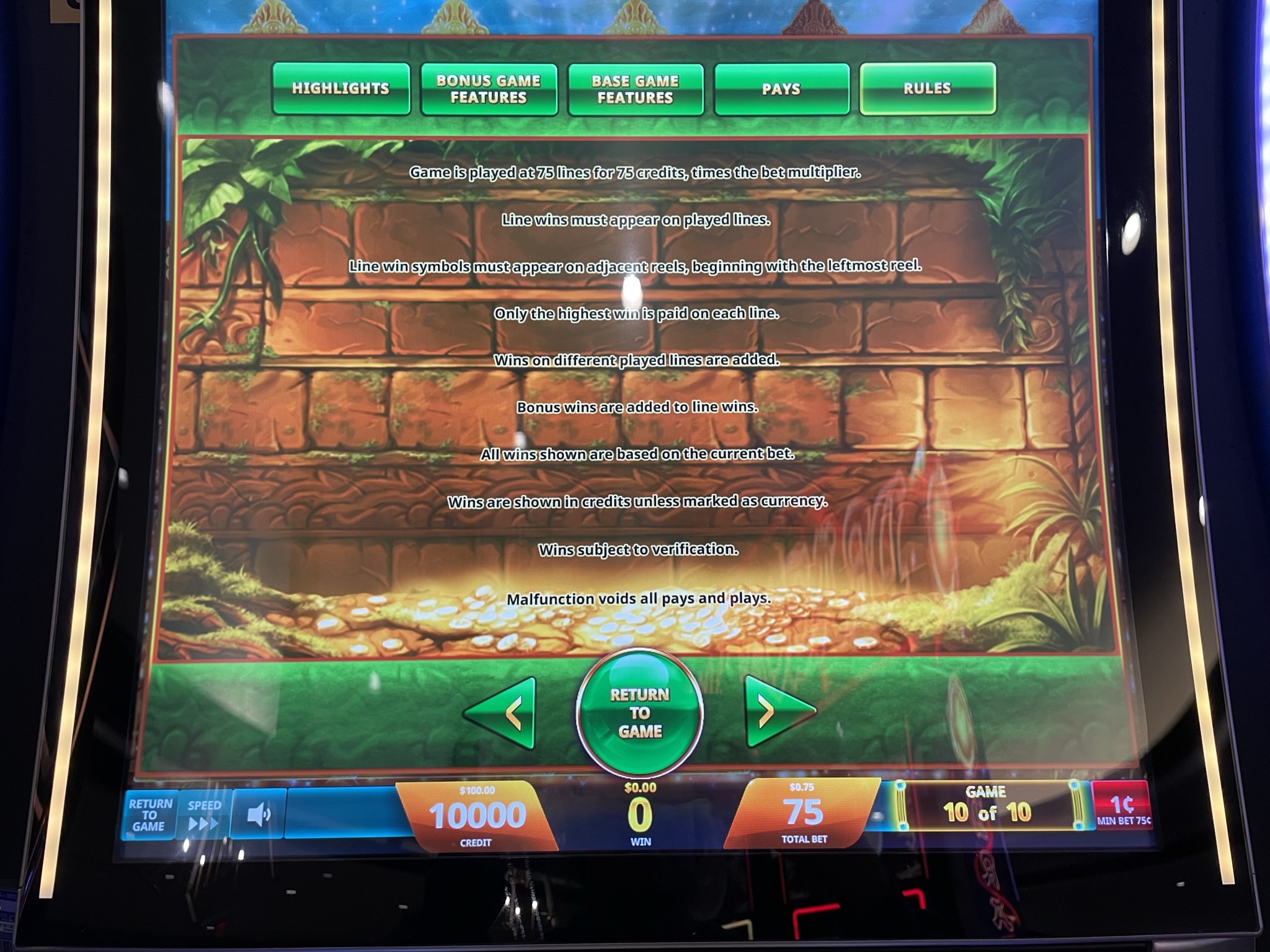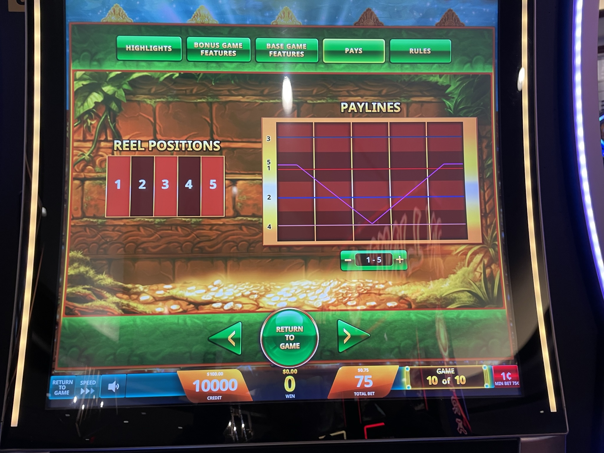 - تحتوي اللعبة على 75 خطًا. يلعب اللاعب جميعها دائمًا مقابل رهانه البالغ 75 رصيدًا.