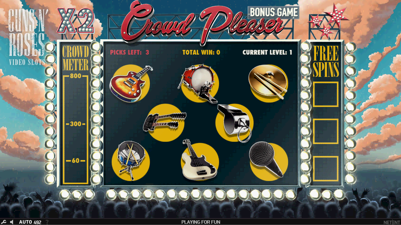 قدمت شركة Net Entertainment أداءً رائعًا في لعبة Guns N' Roses (GNR). يتكامل الفيديو والرسومات والأصوات والتصميم معًا ليُقدم لعبةً تُضاهي أفضل ألعاب السلوتس على الإنترنت. تزخر اللعبة بالعديد من الميزات والمكافآت. إذا كنت من مُحبي ألعاب السلوتس لتستمتع بمشاهدة دوران البكرات، فهذه اللعبة ليست مُناسبة لك. أما إذا كنت من مُحبي ألعاب السلوتس الذين يُعانون من اضطراب نقص الانتباه، وترغب في مُفاجأة شيء ما في كل دورة تقريبًا، فإن لعبة Guns N' Roses صُممت خصيصًا لك.