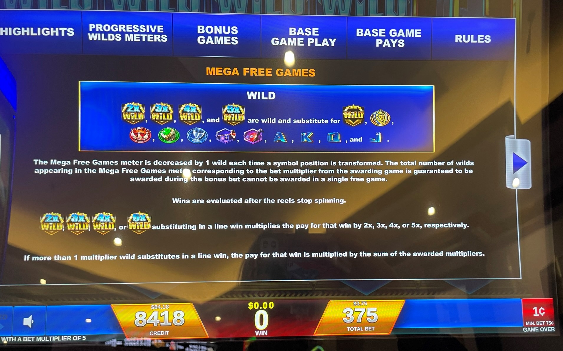 - يمكن لأي موضع على الشاشة الحصول على ما يصل إلى خمسة رموز بديلة. إذا حصل أي موضع على رمزين بديلين على الأقل، فسيحصل اللاعب على مضاعف يساوي عدد الرموز البديلة في ذلك الموضع لكل فوز يساهم به الموضع.