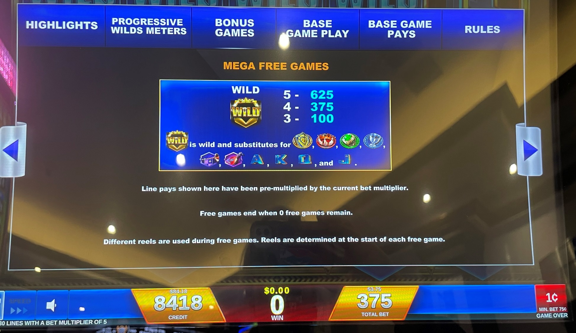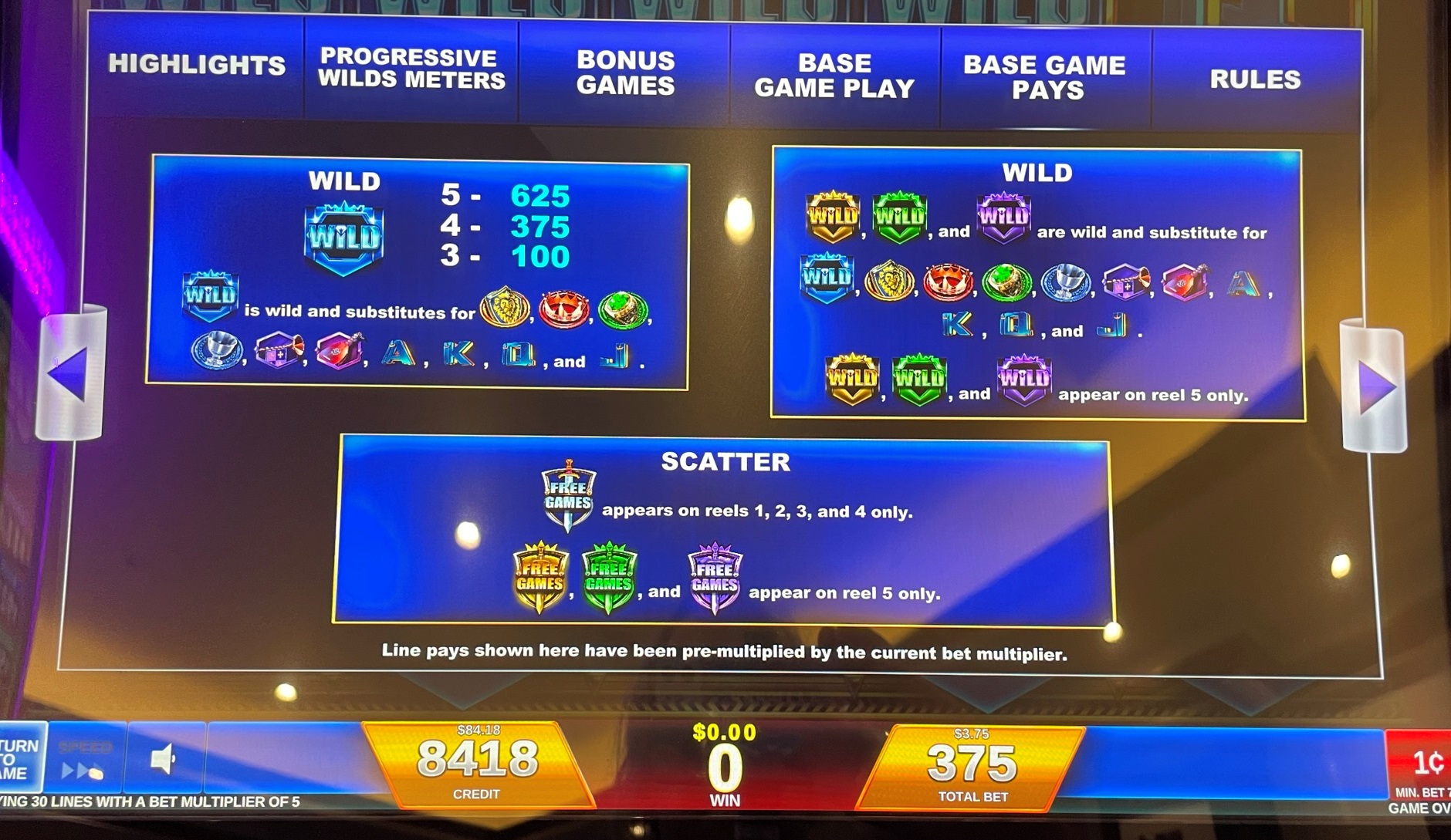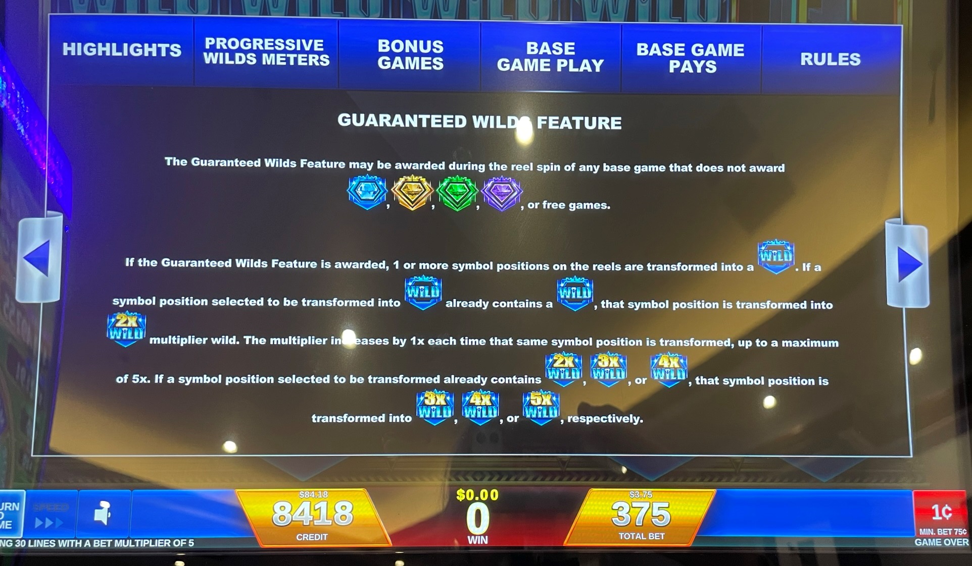- كل مستوى مختلف من الرهان هو بمثابة لعبة منفصلة، مع بنوك منفصلة من الرموز البرية (انظر أدناه).