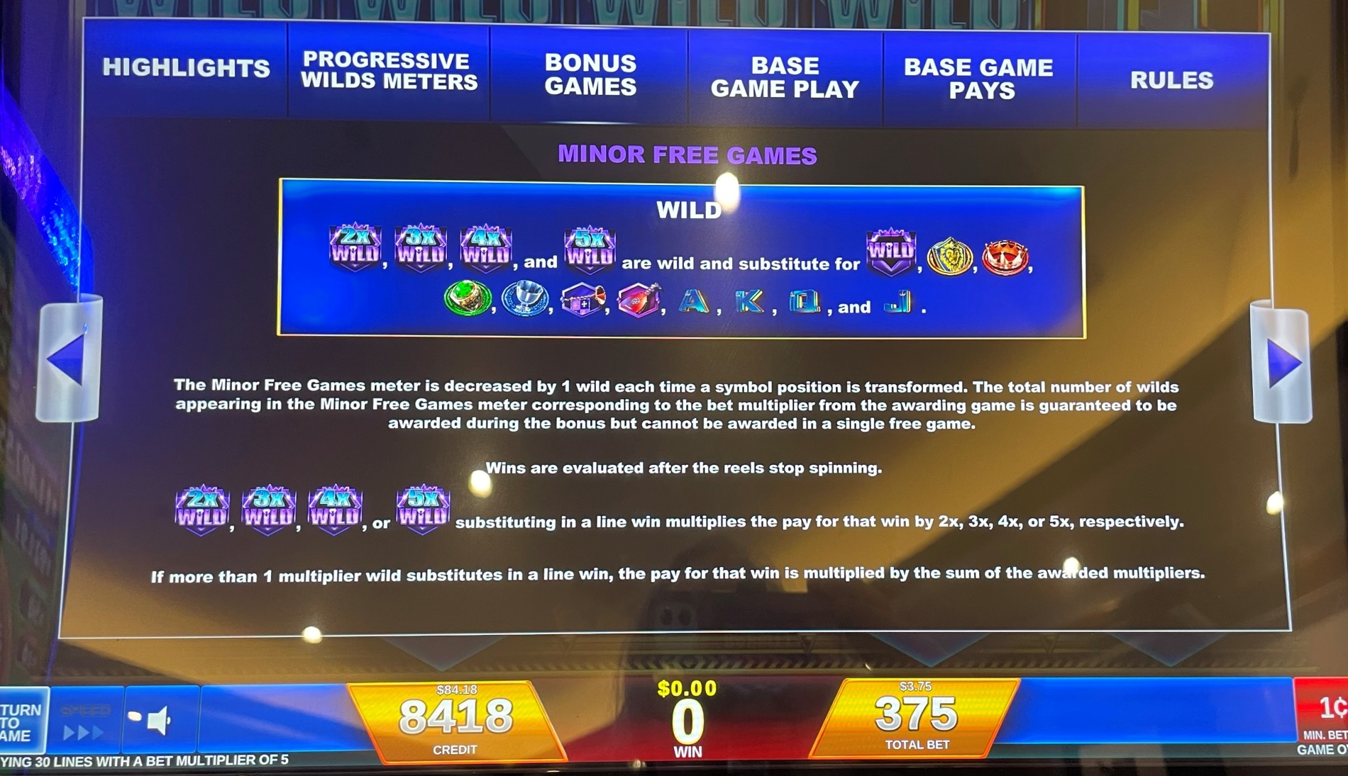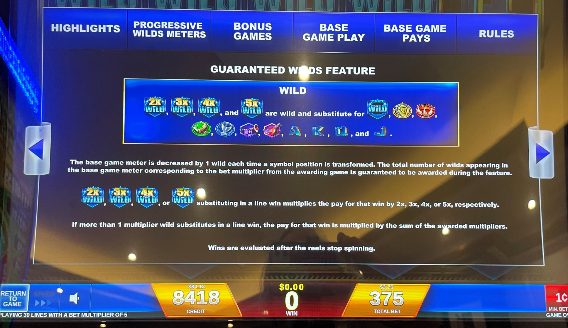 - إذا مر أي فوز بخط الدفع عبر رمز Wild واحد على الأقل، فسيتم ضرب الفوز بإجمالي الرموز البرية التي تشكل هذا الفوز.