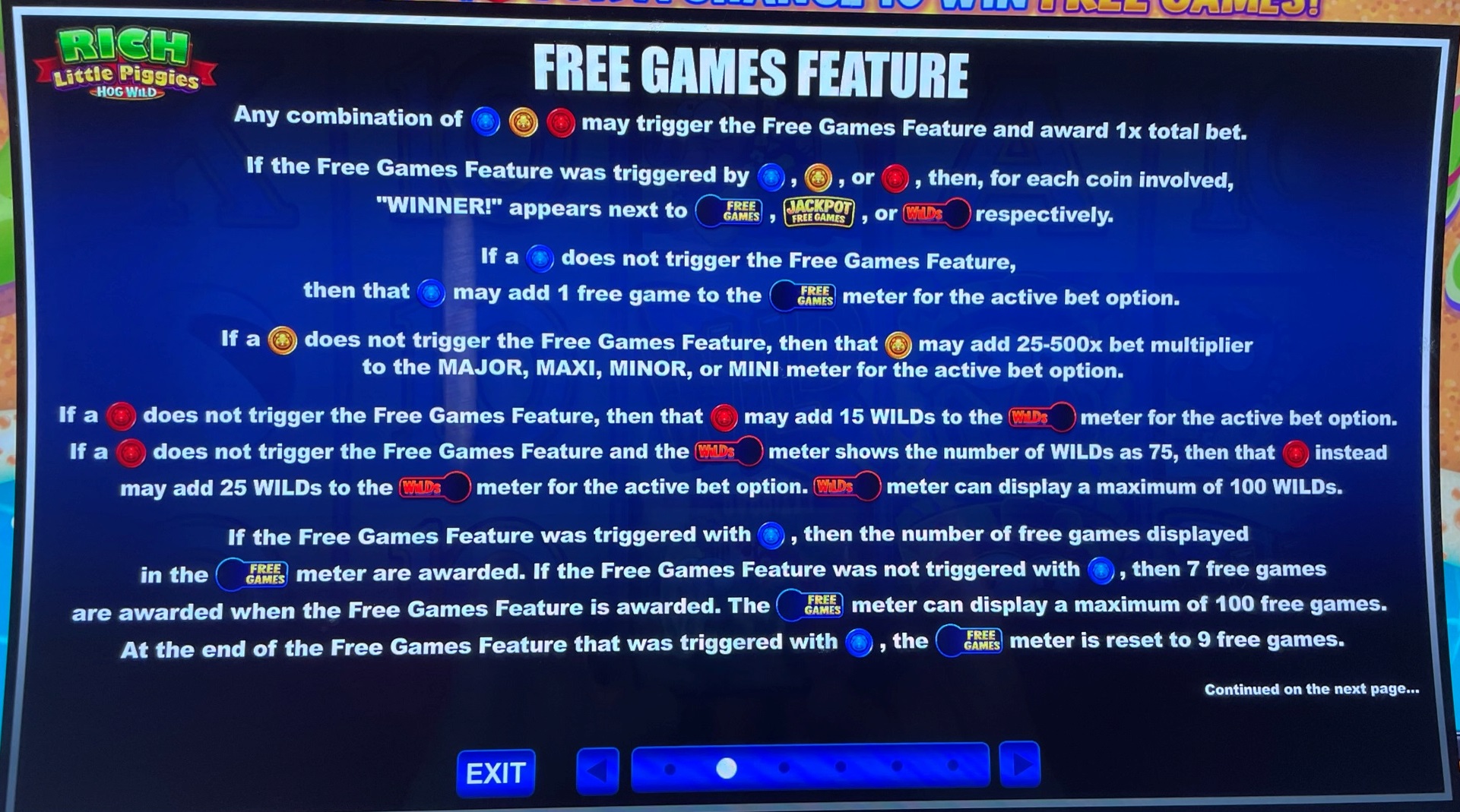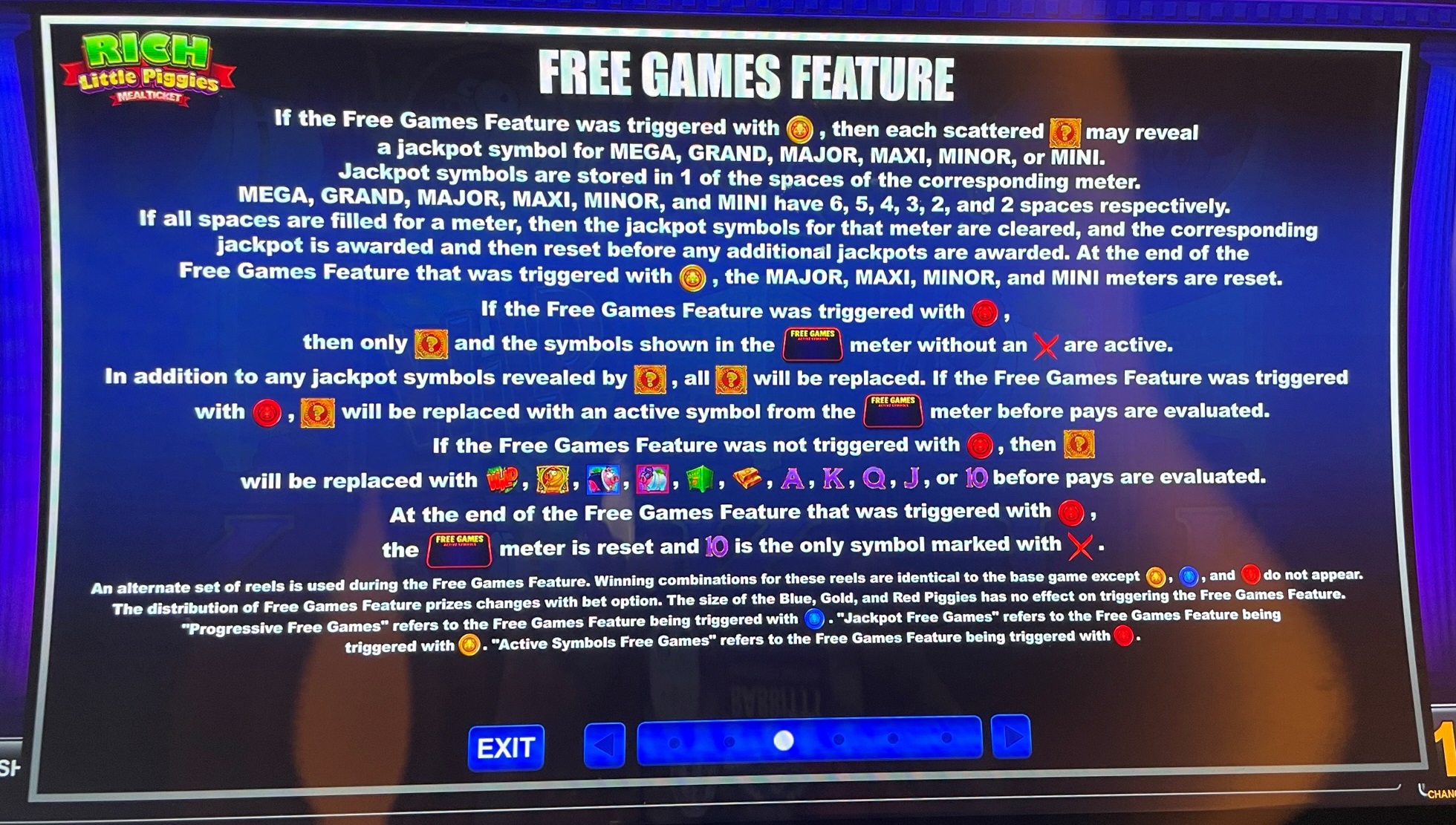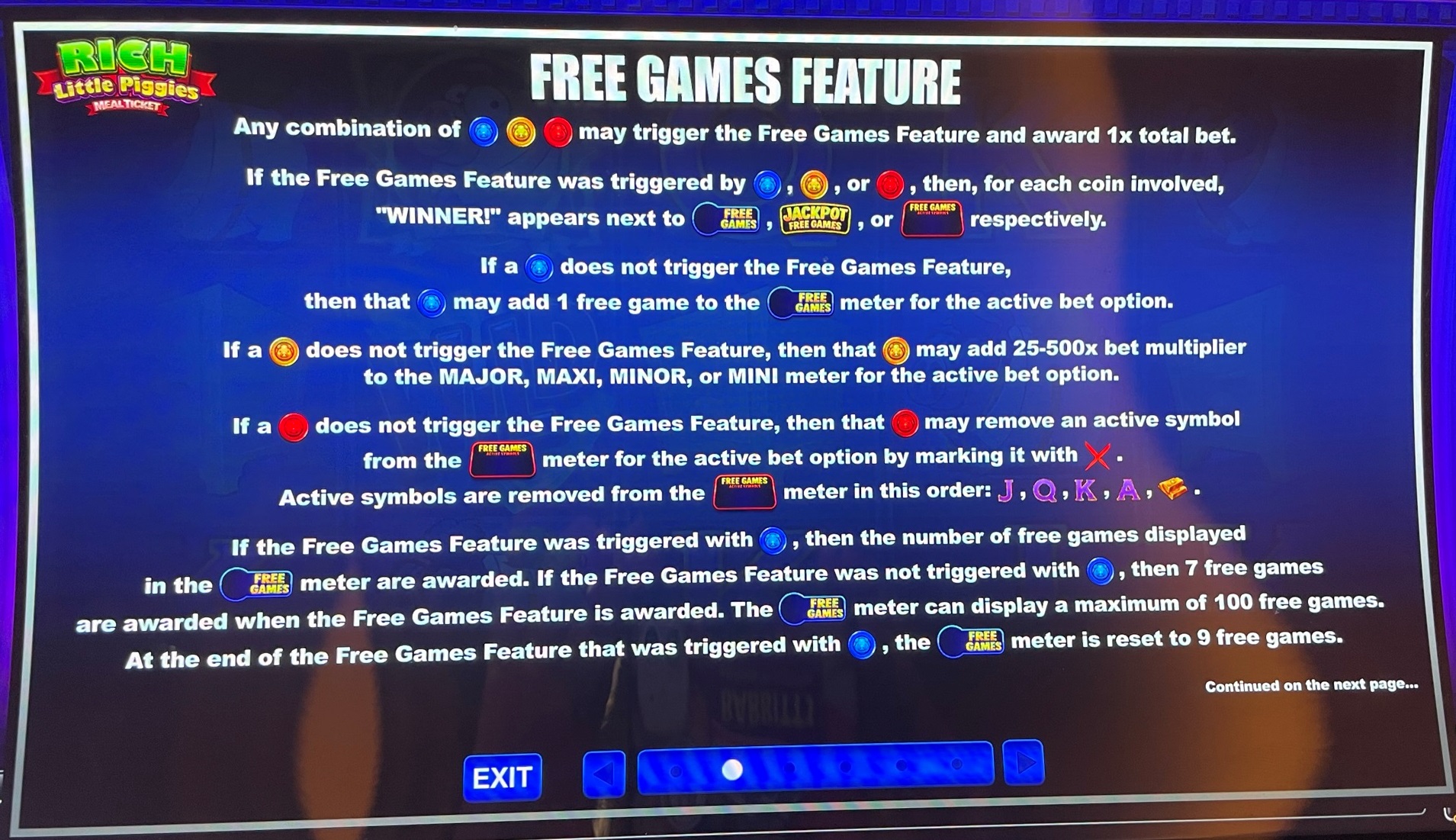 - جميع حصالات القمار الثلاثة مرتبطة بمكافأة دورات مجانية. سأسميها مكافآت الأزرق والأصفر والأحمر، لأنها مرتبطة بلون حصالات القمار التي فعّلت تلك المكافأة.