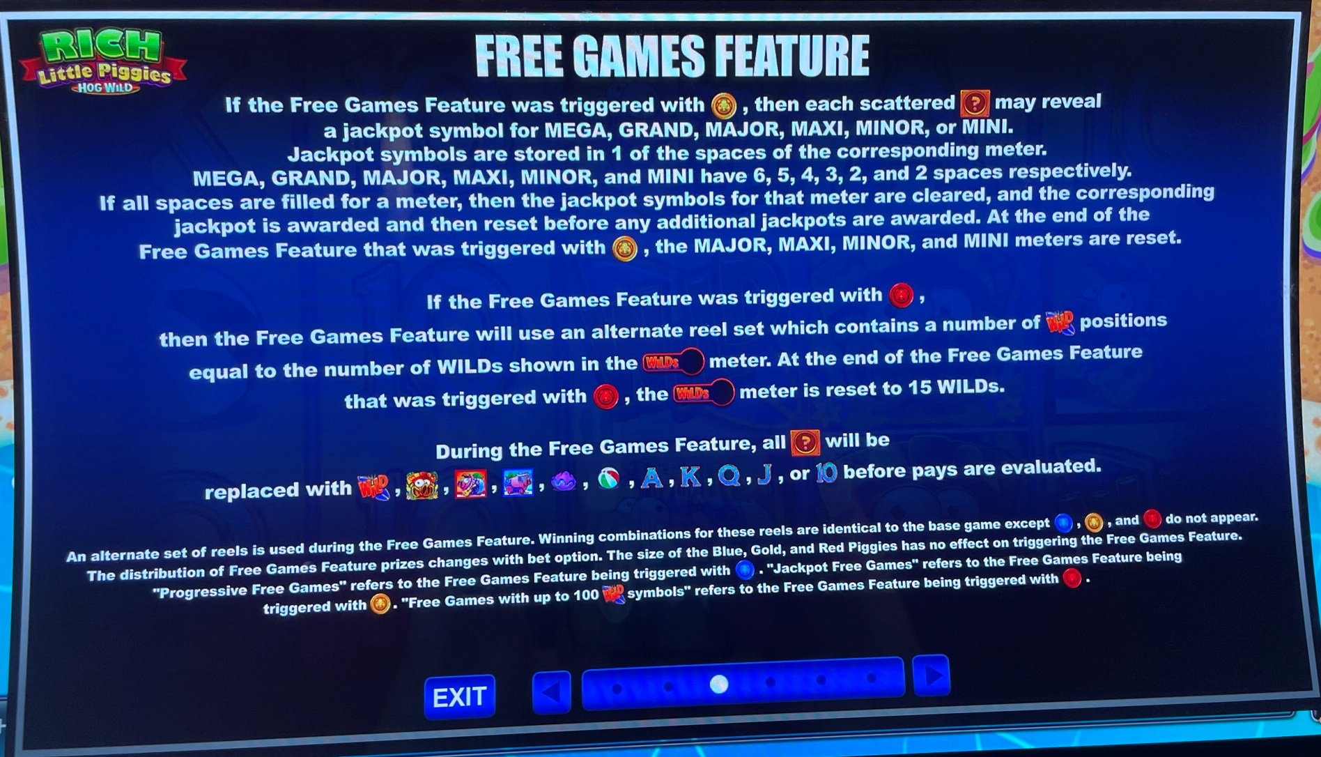 لعبة "ريتش ليتل بيغيز" هي ماكينة قمار أخرى متغيرة الحالة، وقد تمنح اللاعب ميزة في بعض الحالات. تعتمد اللعبة على العثور على العملات المعدنية أثناء اللعب. قد تسقط هذه العملات أحيانًا في أحد ثلاثة حصالات. وعندها، تُضاف قيمة إلى لعبة مكافأة مرتبطة بالحصالة الملونة. كما يمكنك رؤية حصالات تكبر مع إضافة المزيد من العملات المعدنية. أحيانًا، تُفعّل العملة المعدنية المكافأة المرتبطة بالحصالة. إذا ازداد حجم الخنازير، وخاصةً الزرقاء، فقد تمنح اللعبة اللاعب ميزة. تختلف الآراء حول هذه اللعبة، لذا خذ نصيحتي بحذر شديد.