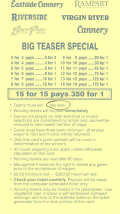 تعتمد الرهانات التشويقية "خارج اللوحة" (OTB) على فروق النقاط الحالية على لوحة الرهان وقت الرهان. لا تُملأ أي بطاقة. بدلاً من ذلك، يُخبر المراهن كاتب الرهان التشويقي بعدد الجولات، وعدد النقاط الإضافية في كل جولة، وأرقام الرهان التي يرغب في المراهنة عليها، ومبلغ الرهان. على سبيل المثال، قد يقول المراهن: "رهان تشويقي من 6 نقاط في دوري كرة القدم الأمريكية (NFL) بثلاثة فرق على 213 و218 و224 مقابل 100 دولار".