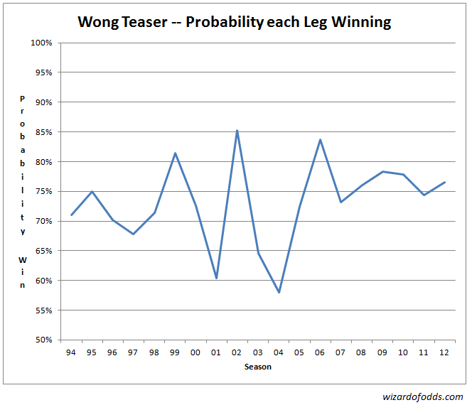 لاحظ أن عام 2004 كان أسوأ عام بالنسبة لـ Wong teasers في فترة العينة، ولاحظ أيضًا العام الذي راهنت فيه على التذكرة أعلاه في Suncoast .