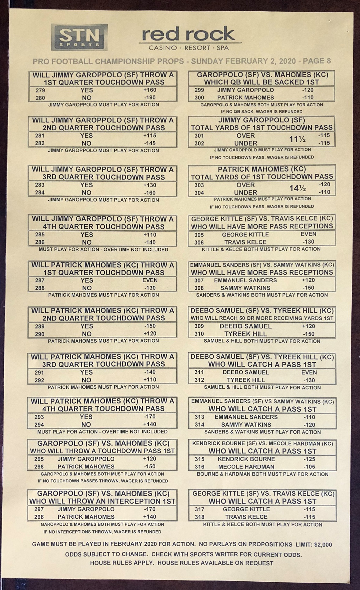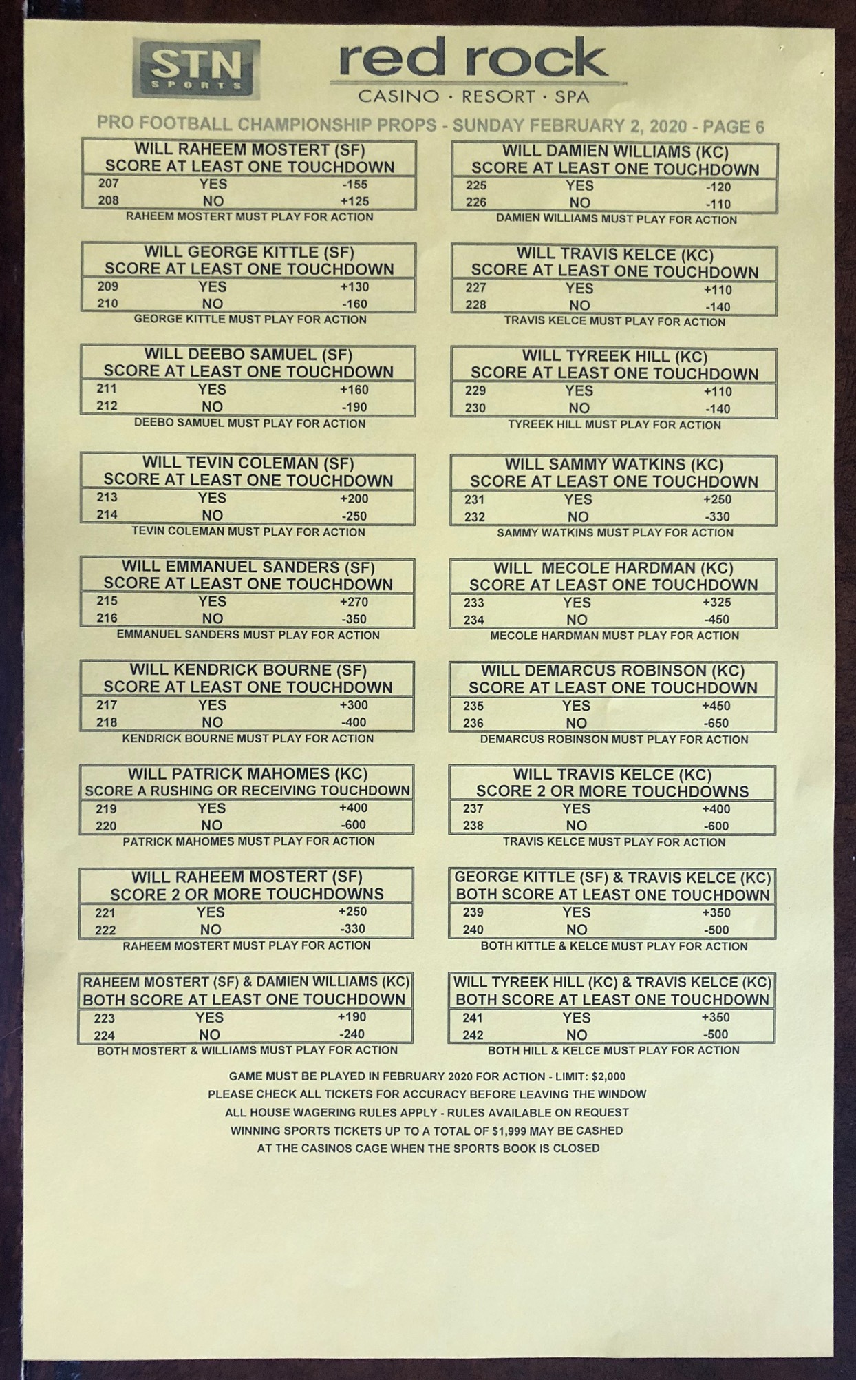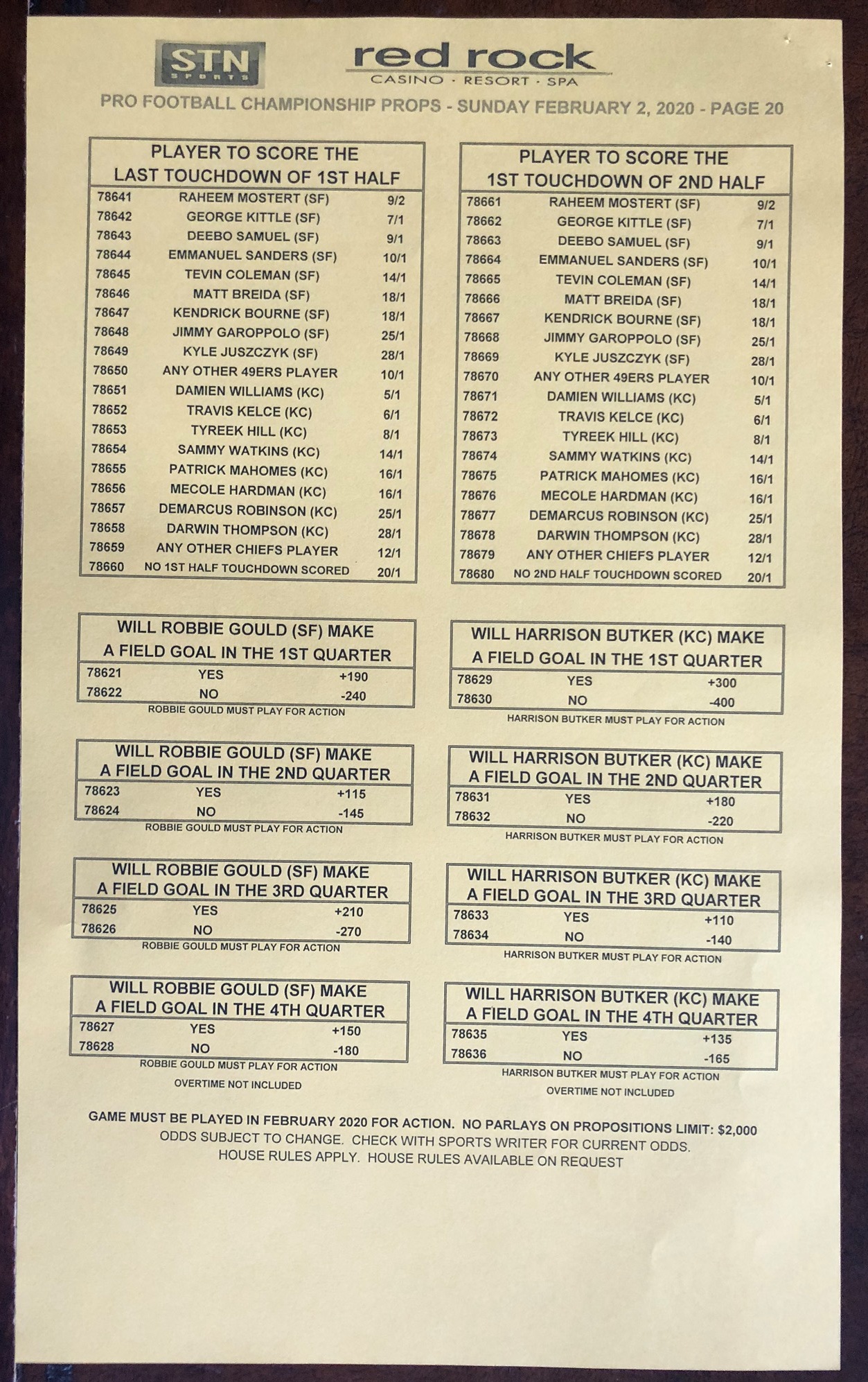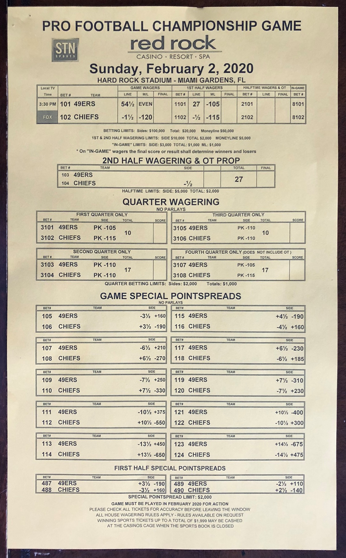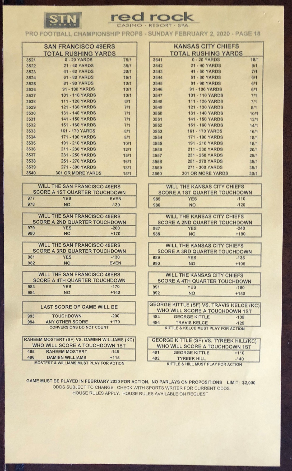 تقدم هذه الصفحة بعض الرهانات المقترحة على Super Bowl 54.