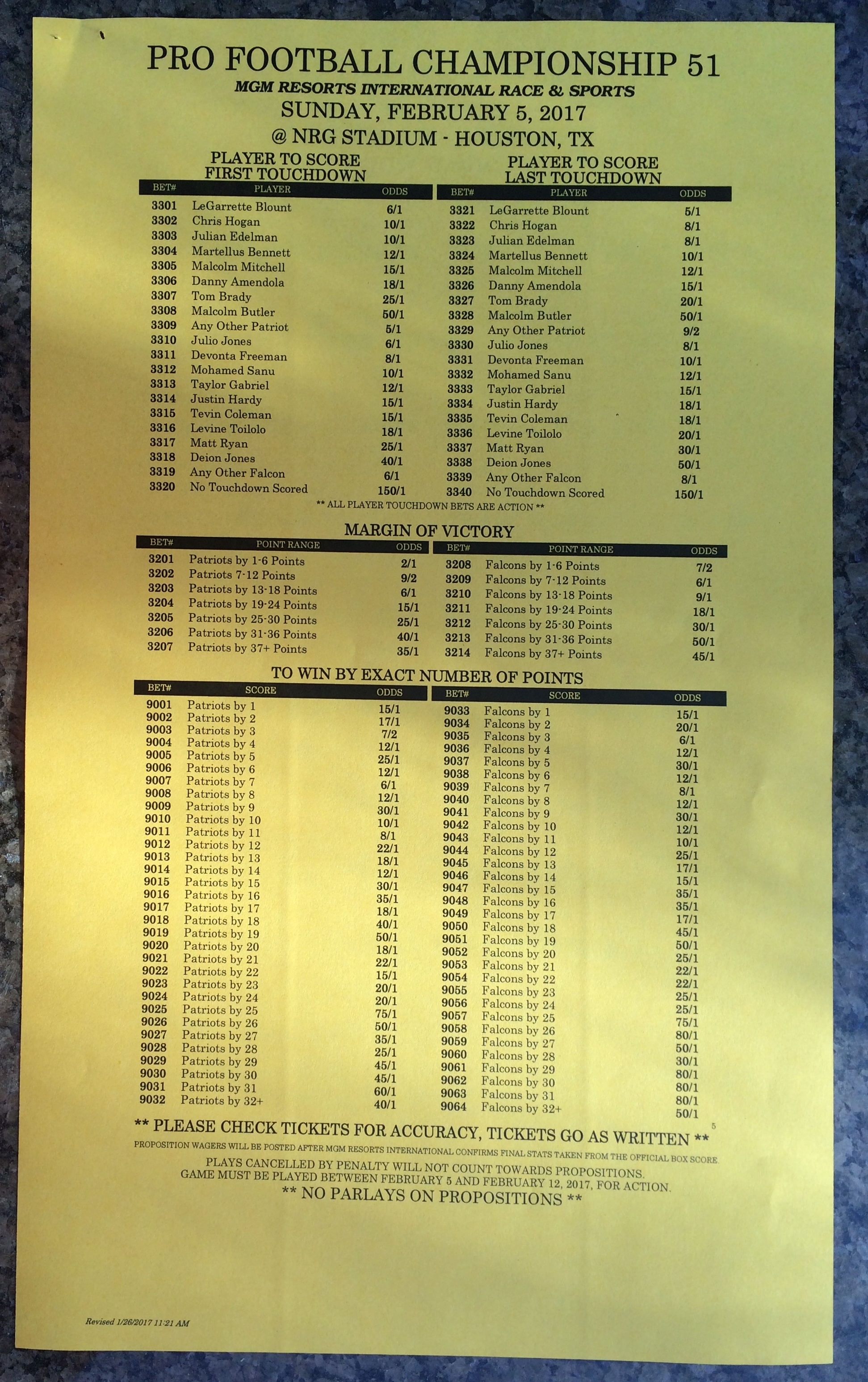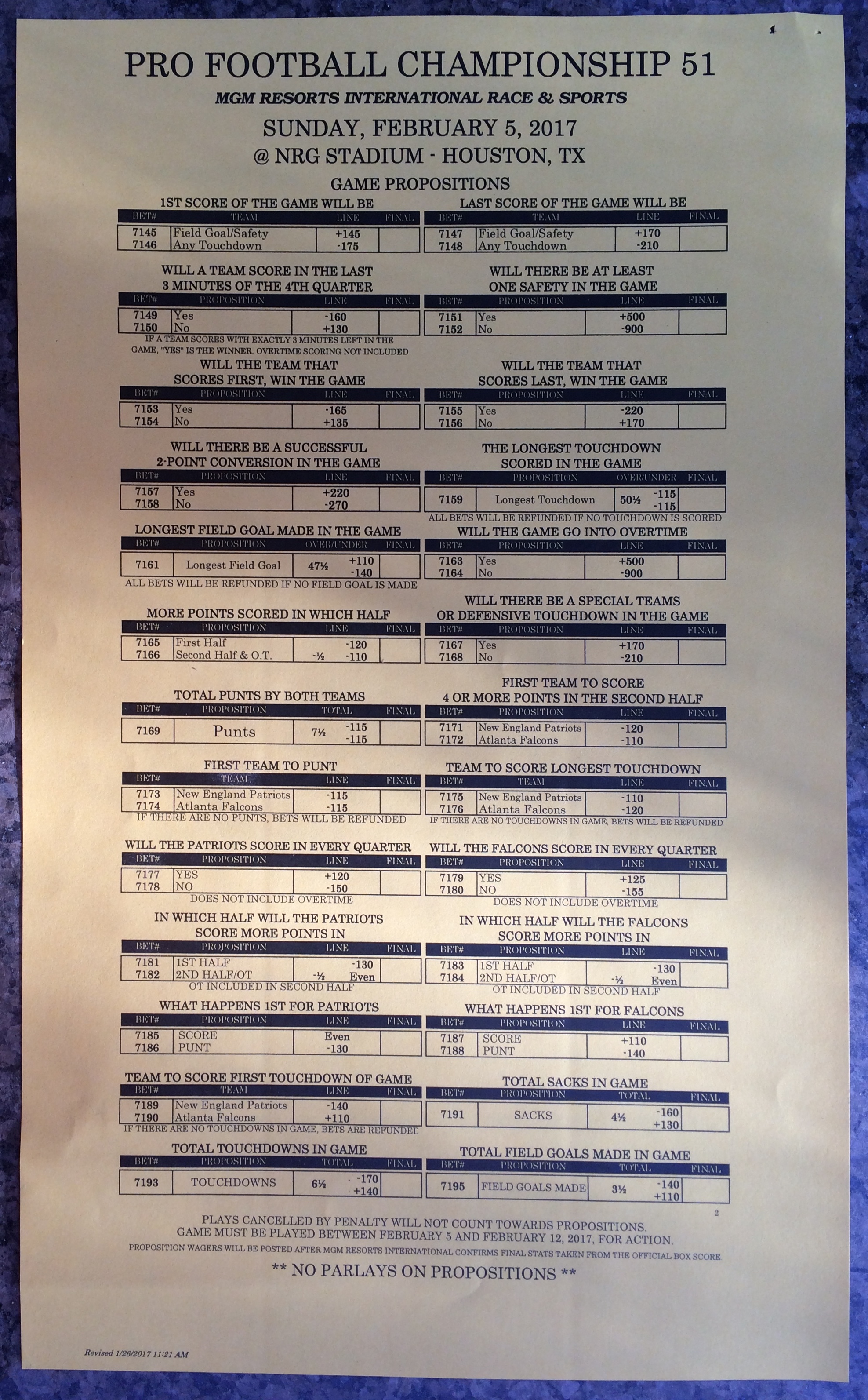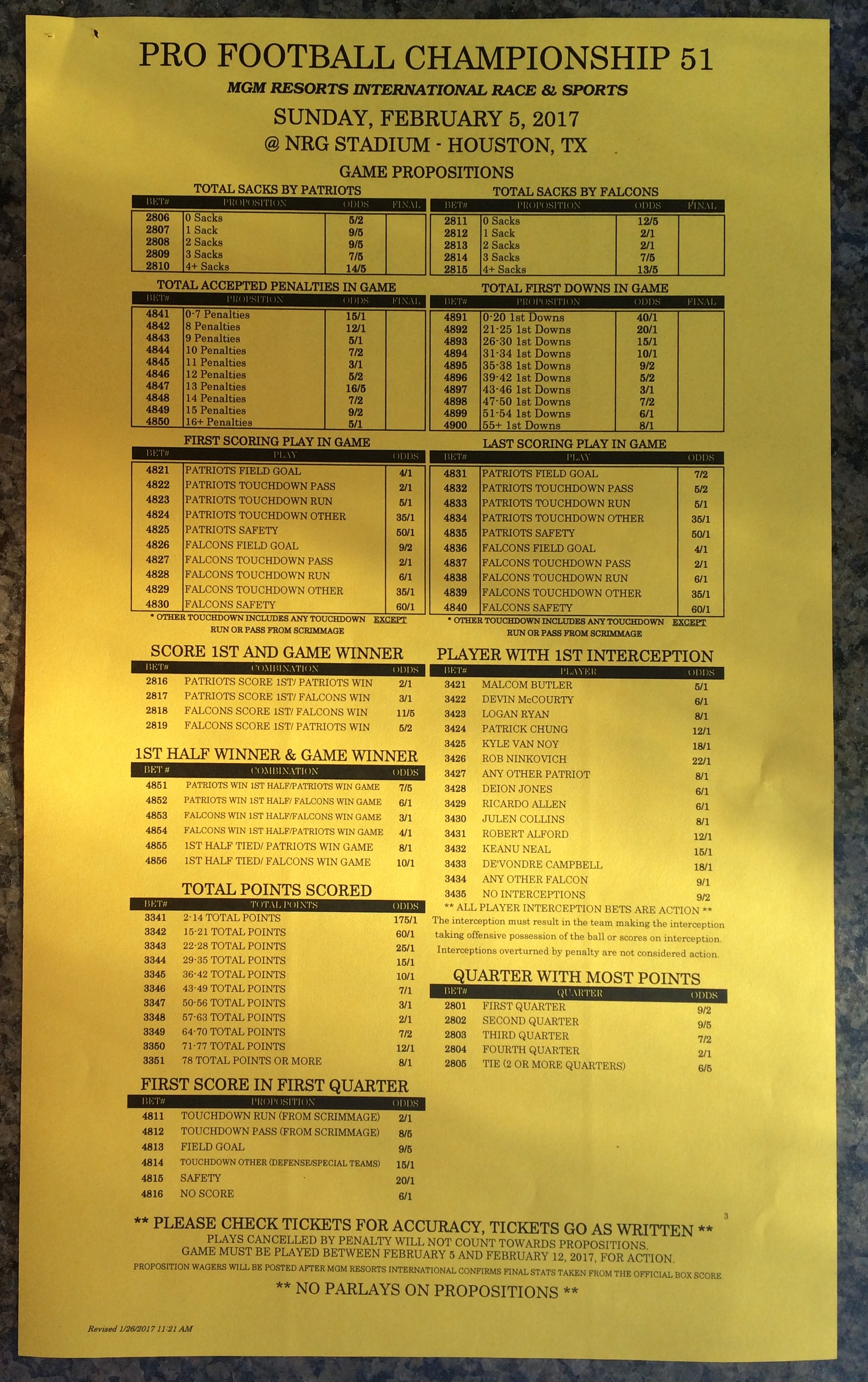 - SUPER BOWL LI (2017) PROP BETTING — مناقشة في منتداي في Wizard of Vegas
