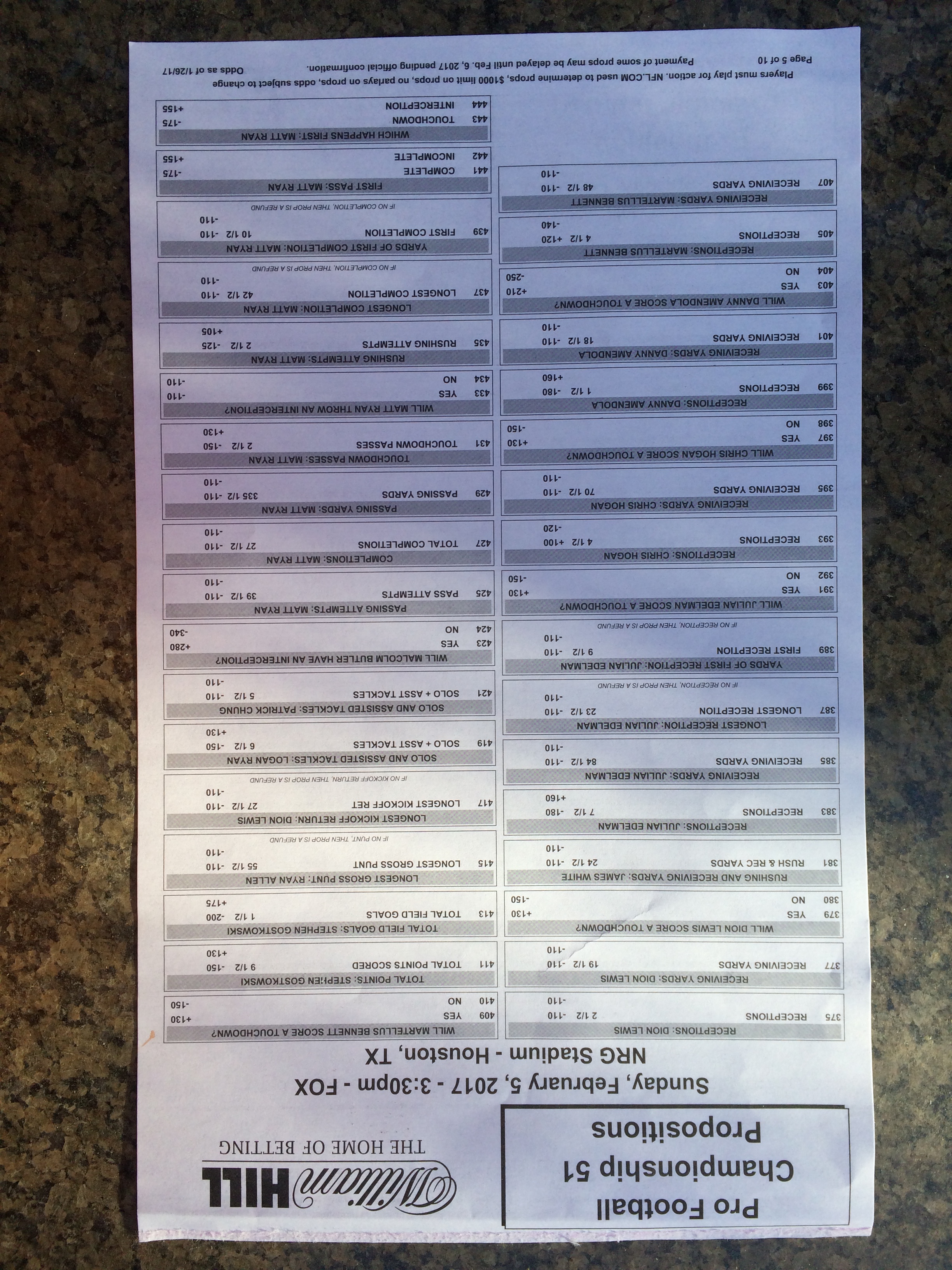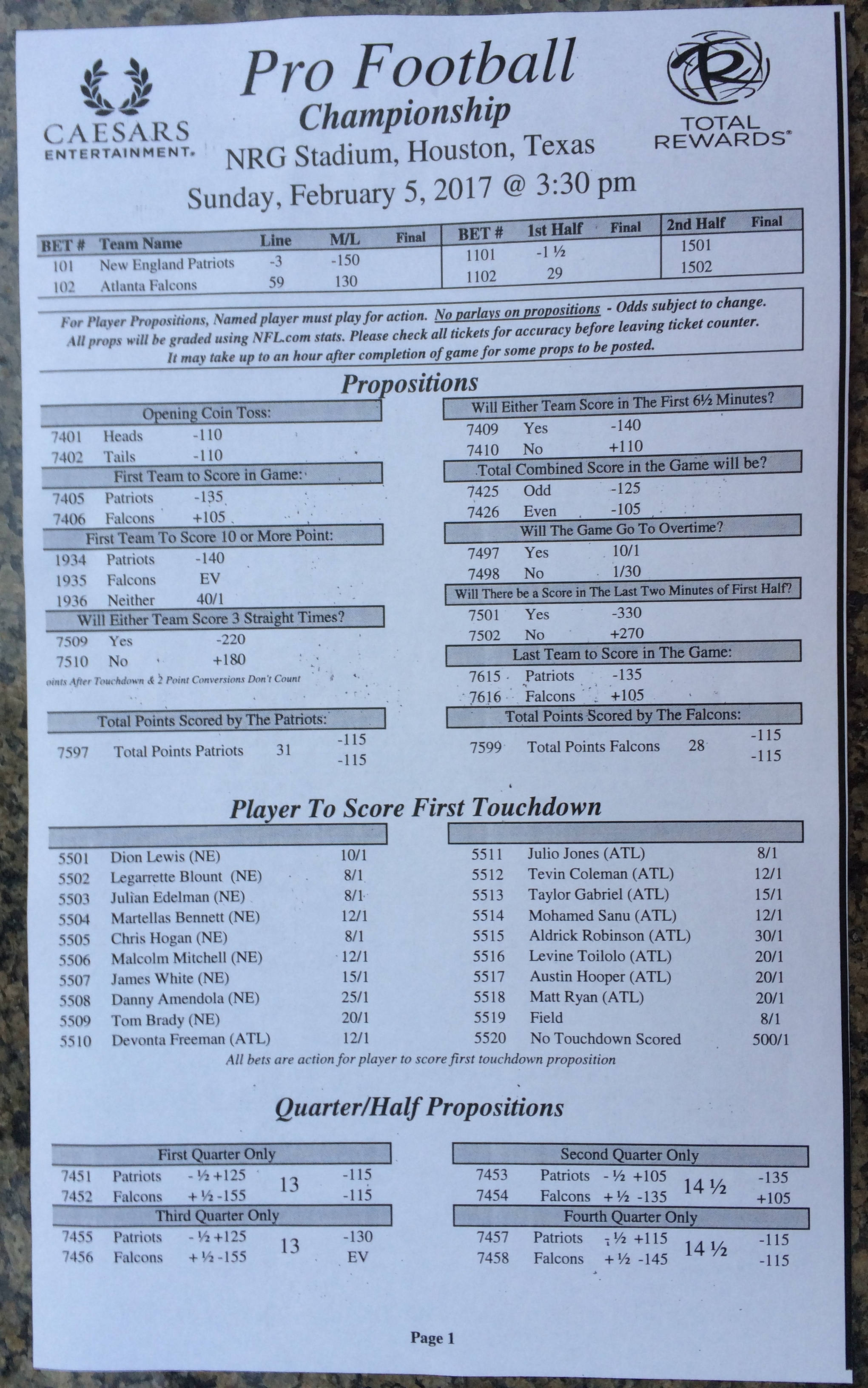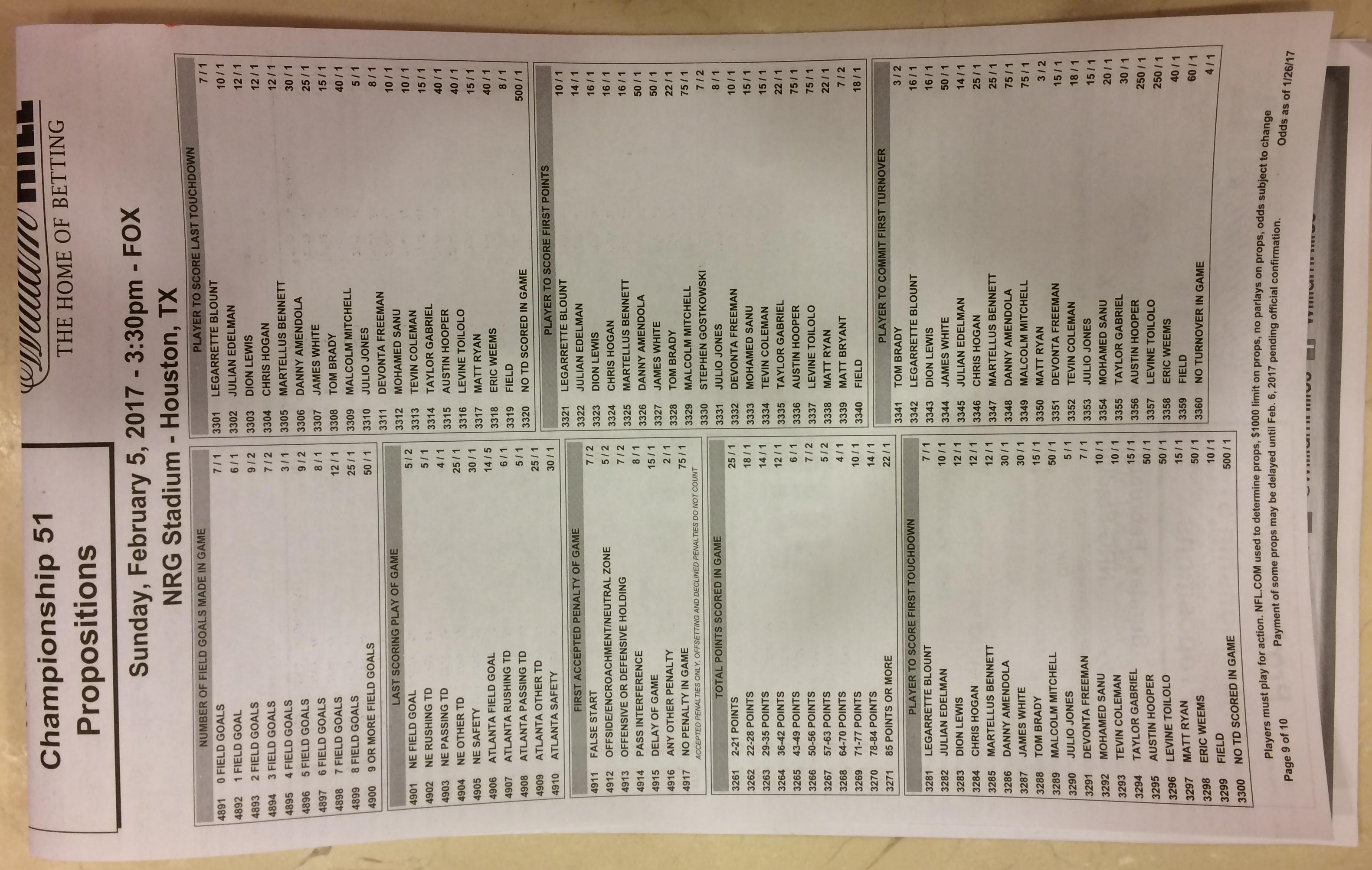 - SUPER BOWL LI (2017) PROP BETTING — مناقشة في منتداي في Wizard of Vegas