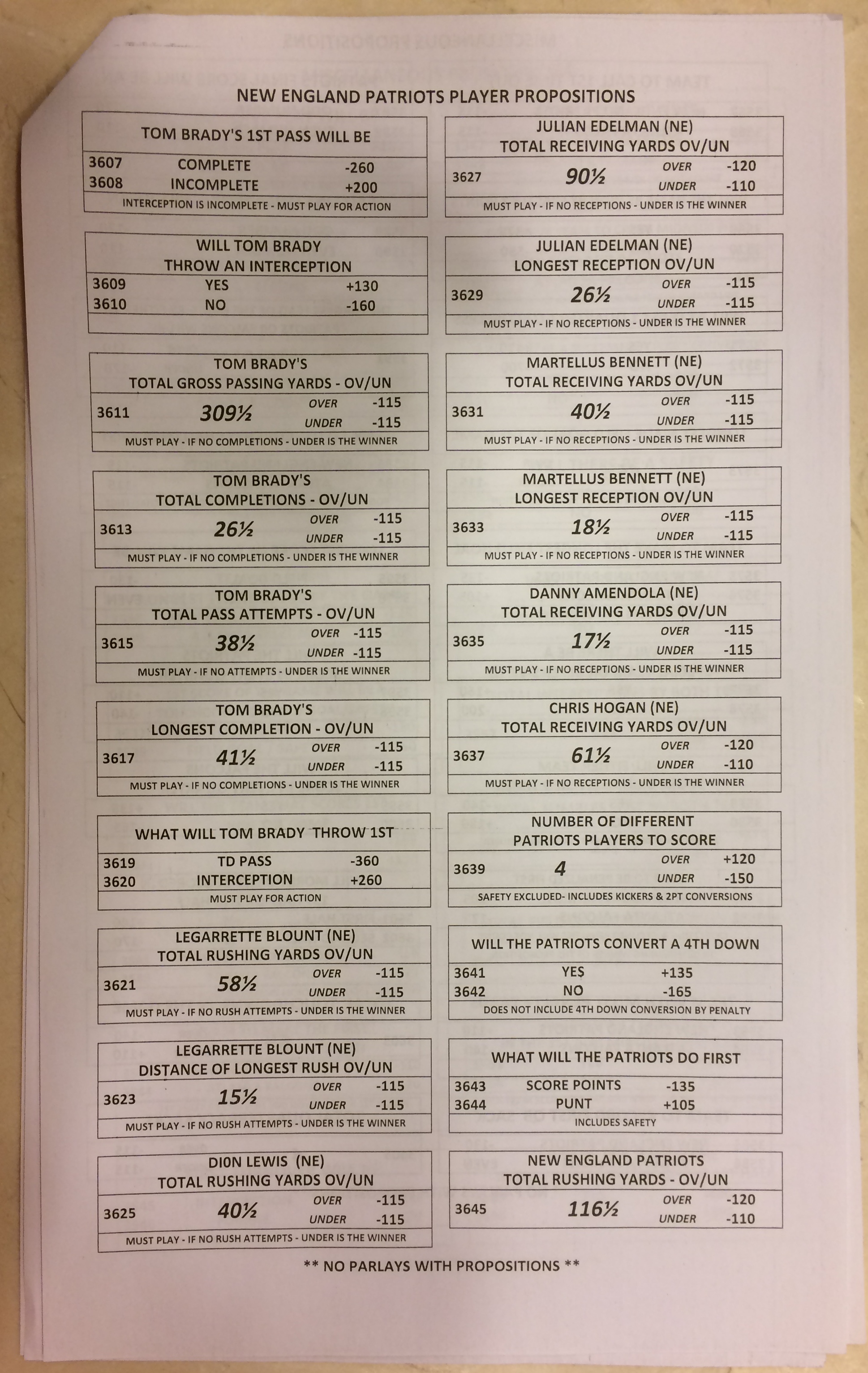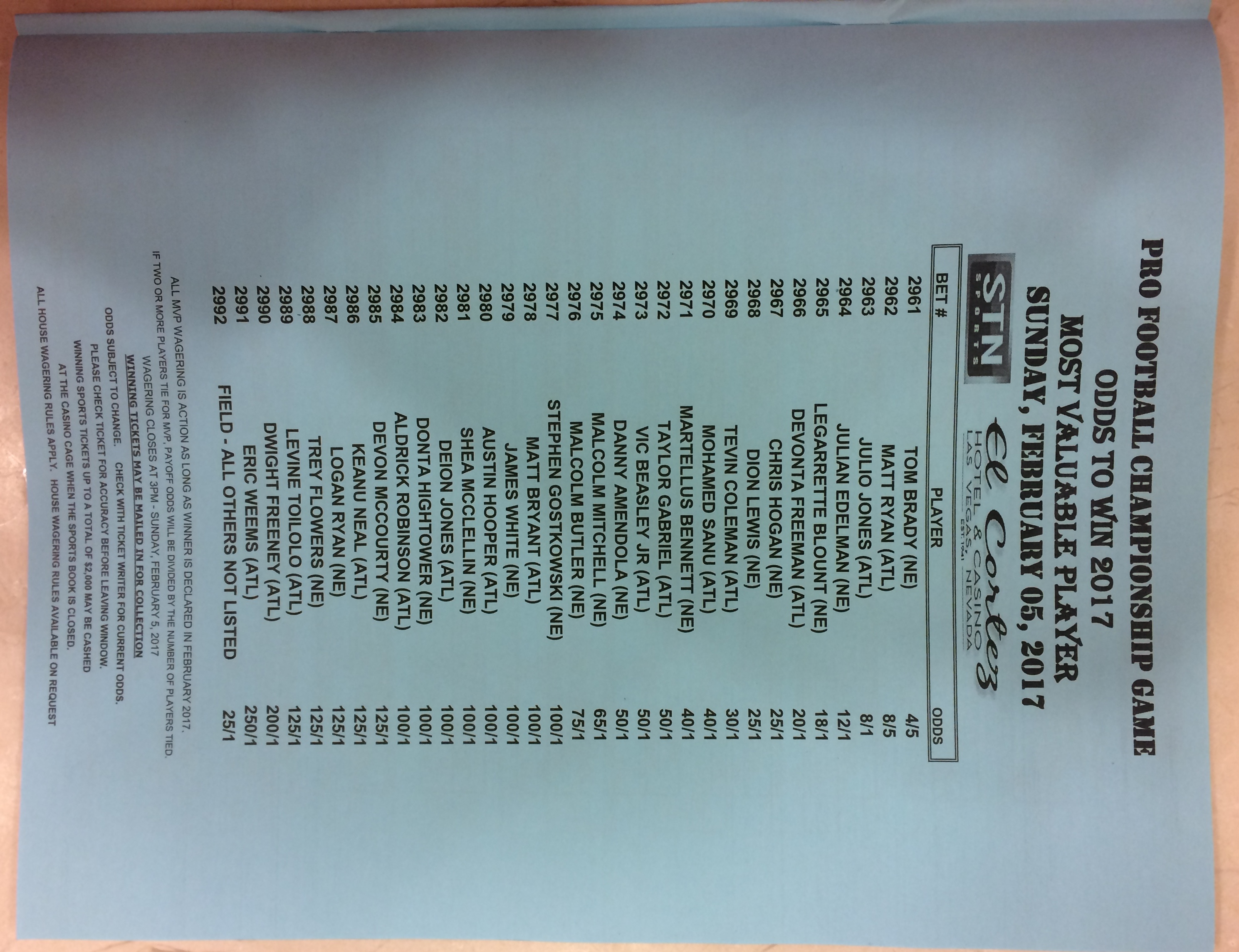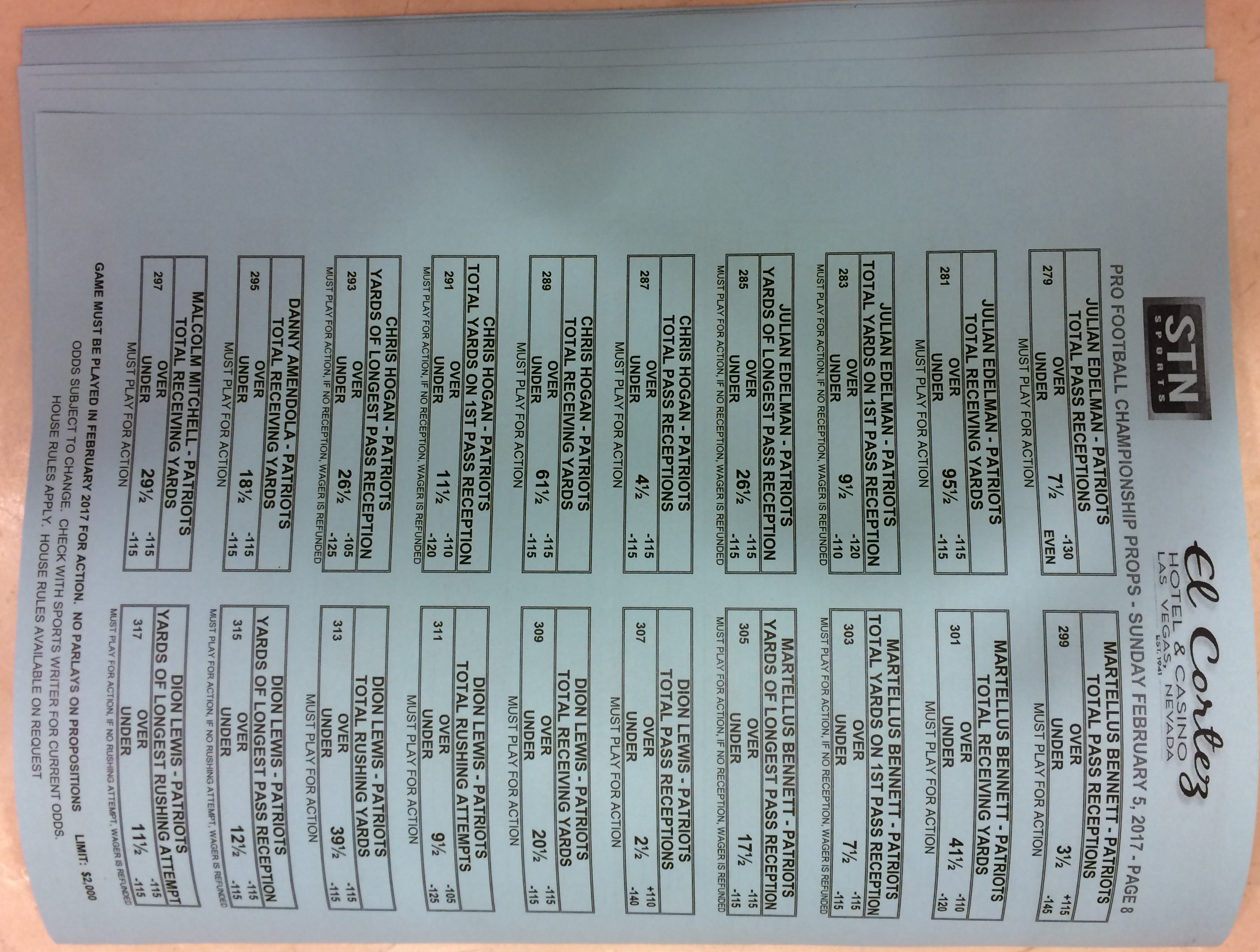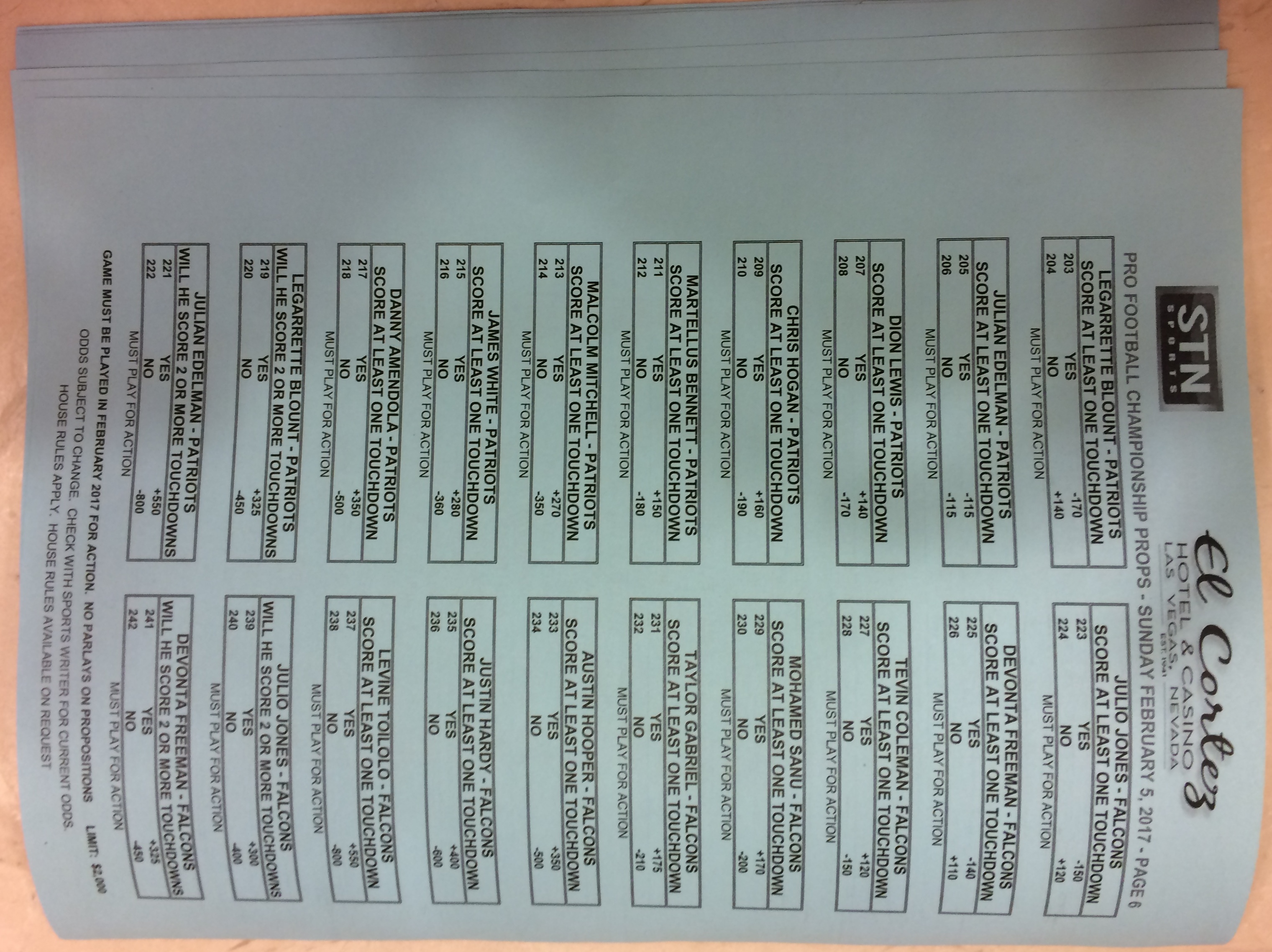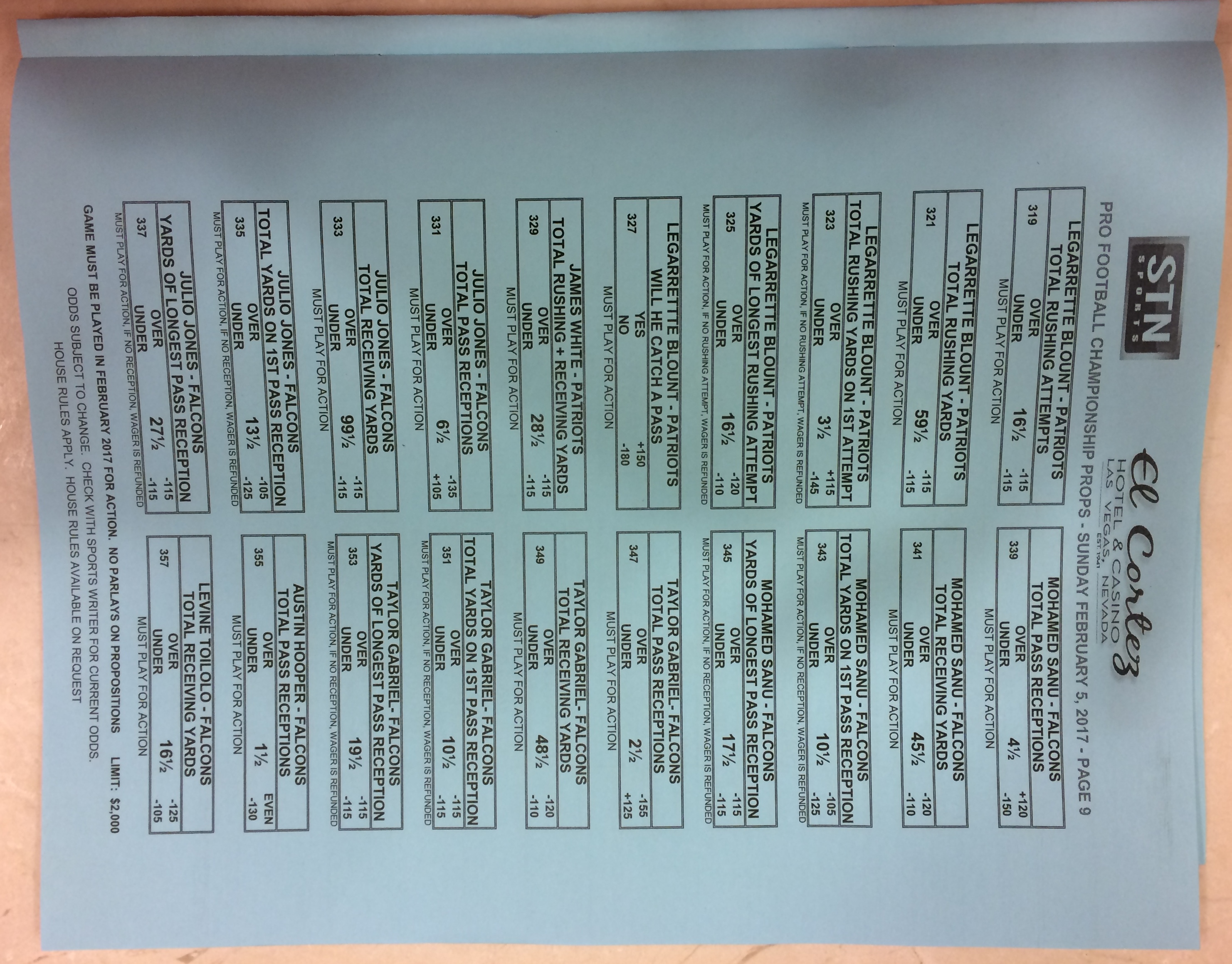 - a href="https://lasvegassun.com/blogs/talking-points/2017/jan/27/full-list-of-super-bowl-51-prop-bets-from-westgate/" target=_blank>القائمة الكاملة لرهانات Super Bowl 51 من Westgate Superbook مثل LasVegasSun.com.
