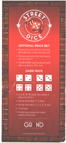 ستريت دايس هي لعبة نرد ظهرت لأول مرة في كازينو داون تاون جراند بلاس فيغاس في 16 مايو 2014. يمكن وصفها بشكل عام بأنها نسخة مبسطة من لعبة الكرابس ، حيث تعتمد على رهانين فقط وأربع رميات كحد أقصى لحل الرهان. في جراند، تُلعب اللعبة في الهواء الطلق، حيث يُلقى النرد داخل صندوق خشبي ثلاثي الجوانب، مطلي ليشبه زقاقًا.